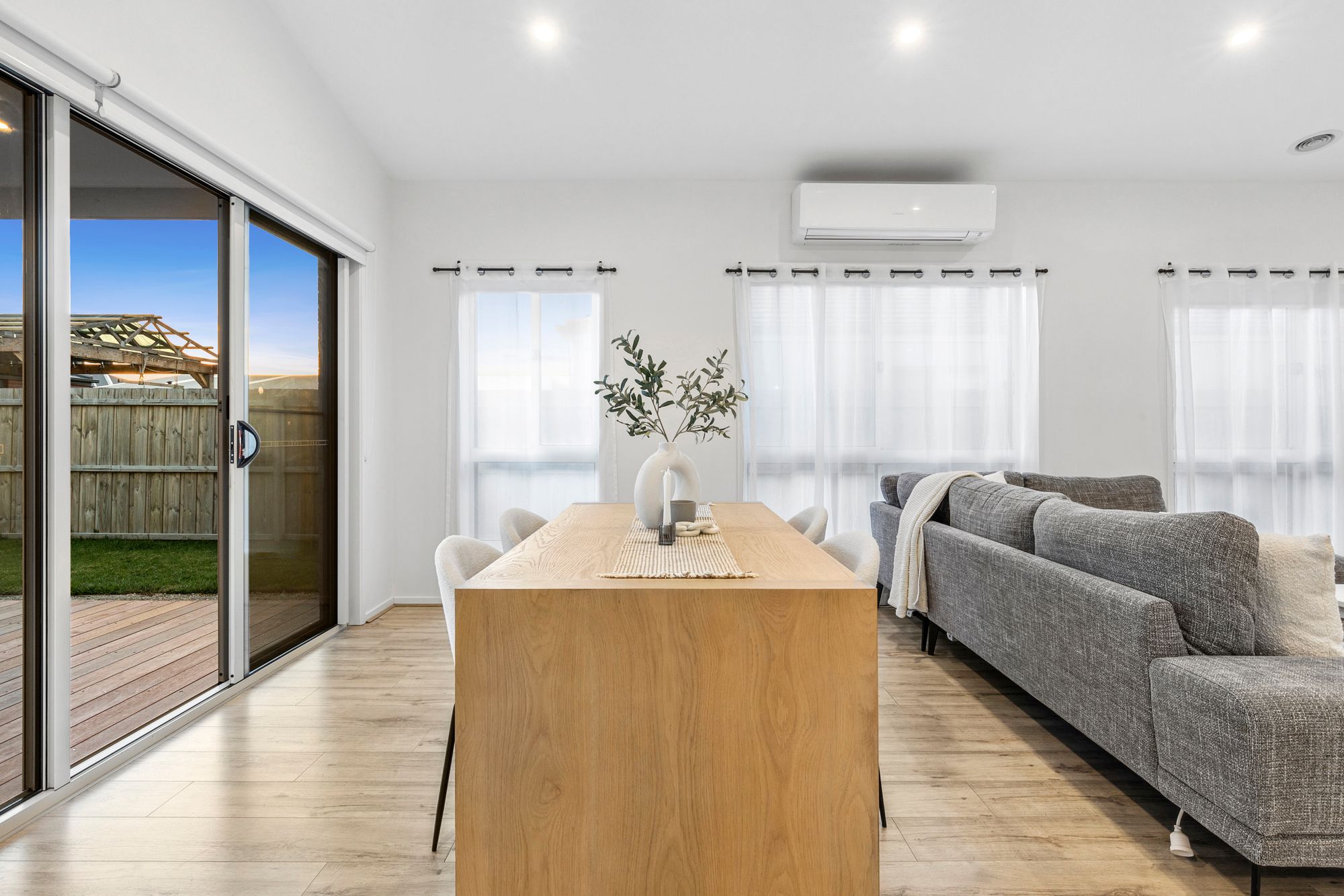The upgraded kitchen is a dream, boasting a 40mm stone island benchtop, premium 900mm Westinghouse stainless steel appliances, a walk in pantry and ample storage. Flowing seamlessly into the main living area, raked ceilings create an airy, serene vibe—a true centerpiece for the whole family to enjoy. A large study nook and three additional spacious bedrooms cater to the entire family, providing both functionality and flexibility. Sliding doors from the main living lead to your outdoor undercover alfresco, complete with a brand-new deck and a generous grassed area, ideal for family gatherings or peaceful afternoons outdoors. Nestled in a beautiful area close to walking tracks, Warralily Conservation Forest, and the Warralily Village Shopping Centre. With esteemed schools nearby, walking trails, and easy access to the Bellarine, Geelong, and Surf Coast, you’re perfectly positioned to enjoy the best of everything. This exceptional home is a must-see, combining luxury with lifestyle in an unbeatable location.