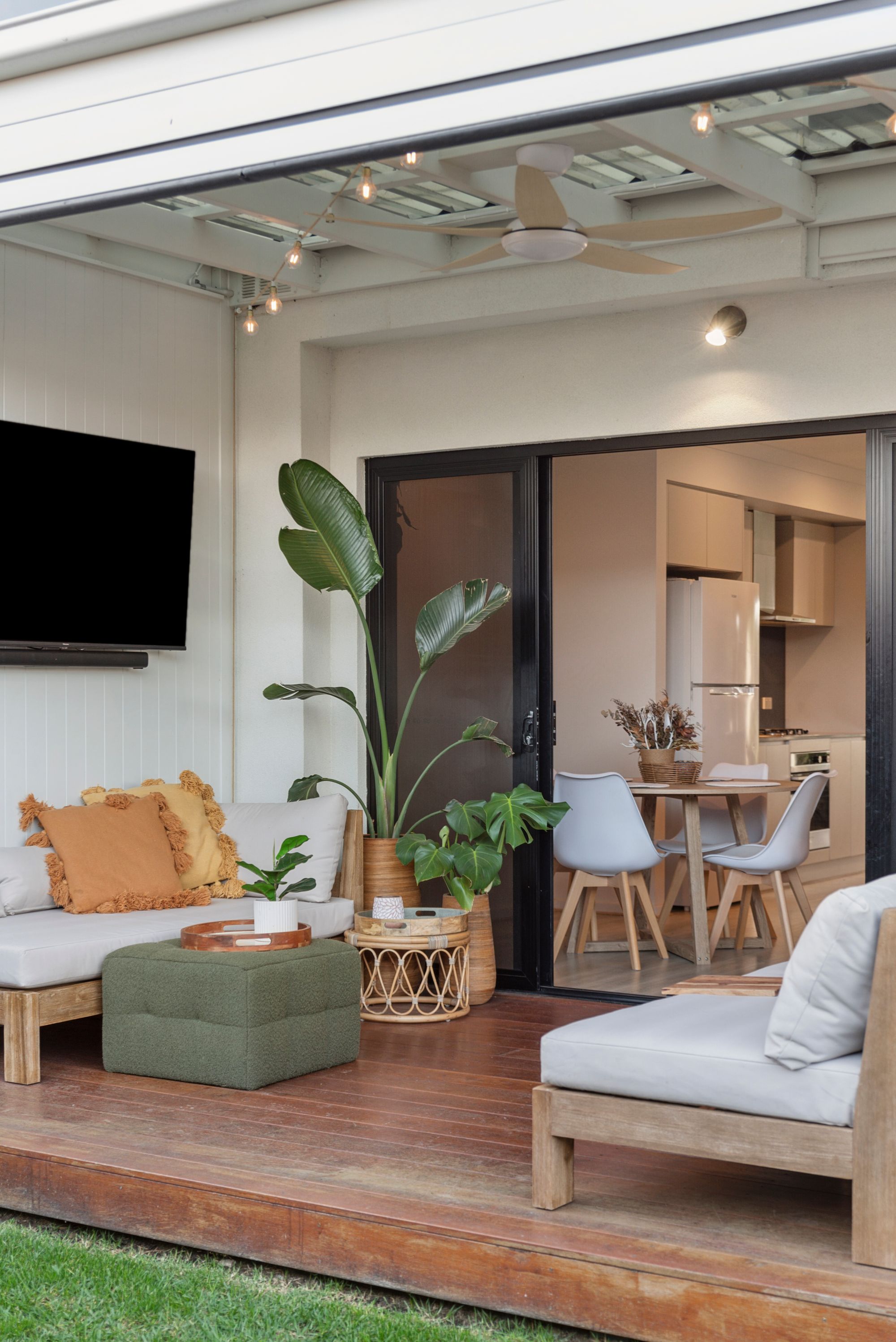 Outdoor – The indoor flows perfectly to the great size decked and undercover alfresco, complete with ceiling fan and VJ panelling feature wall. Garden shed and great grassed area. Stylish and modern façade with well maintained front yard and established plants overlooking the parkland.