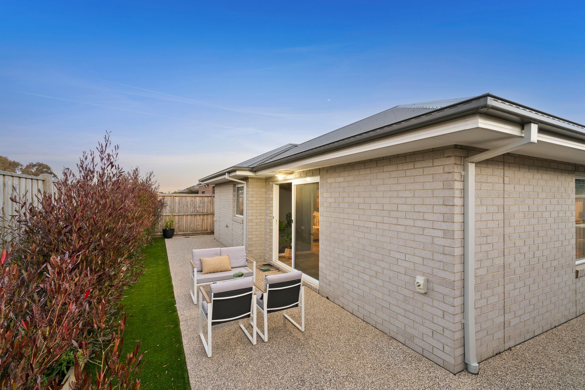 Outdoor – With a focus on lifestyle and low-maintenance design, a elegant façade welcomes you into the home while the established gardens are defined by the exposed aggregate pathing which surrounds the home.