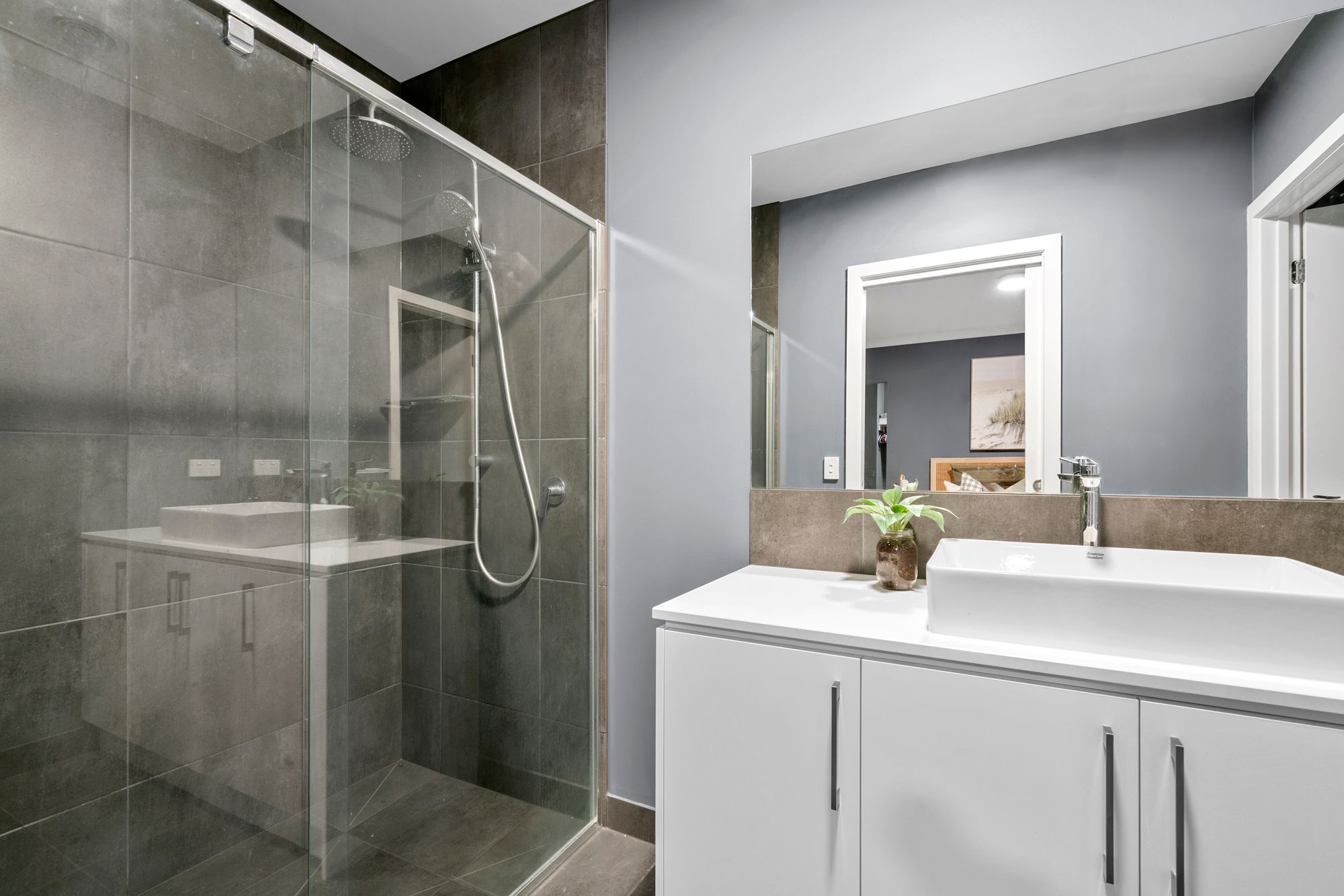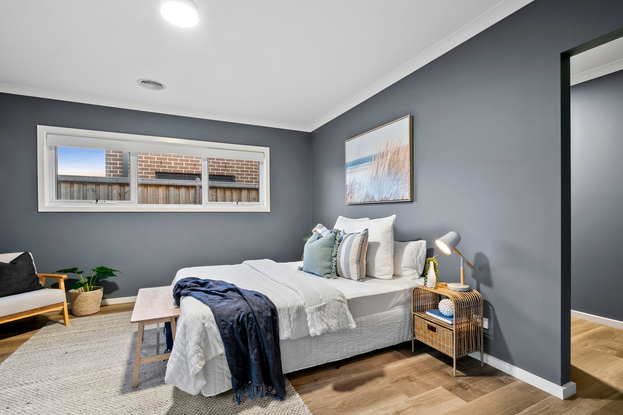 Master Suite One: Situated at the front of the home. It showcases a generously sized space, South-facing double-glazed window, day and night blinds, ducted heating. Ensuite with wall to wall shower, single vanity with underbench storage, frosted window and separate toilet.