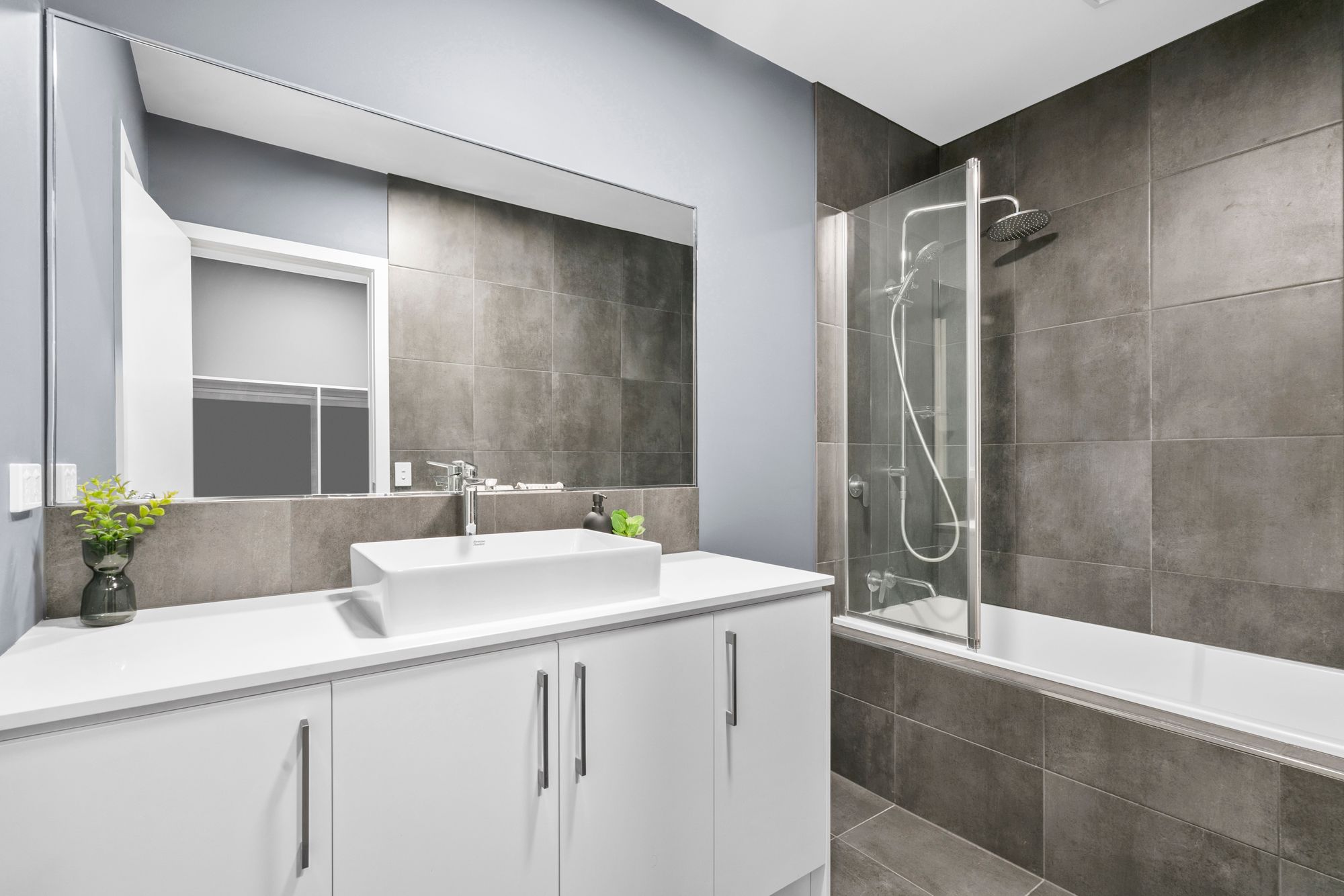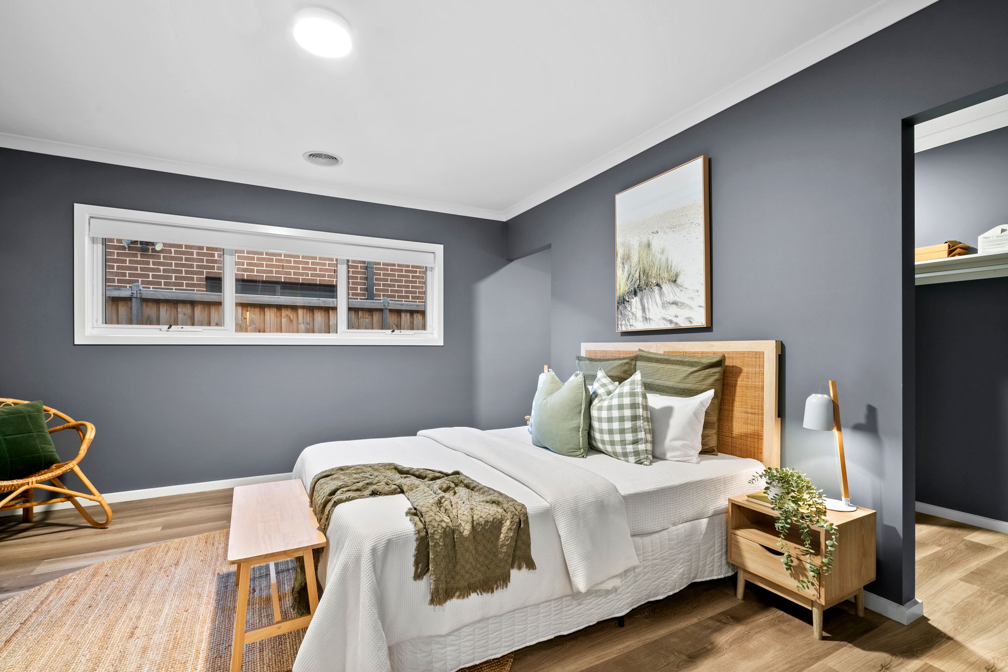 Master Suite Three: Privately located at the rear of the home, two double-glazed windows with day and night blinds, Large walk-in robe leading into the ensuite. Built-in wall to wall bathtub/shower, single vanity with stone benchtop, frosted window, private toilet.