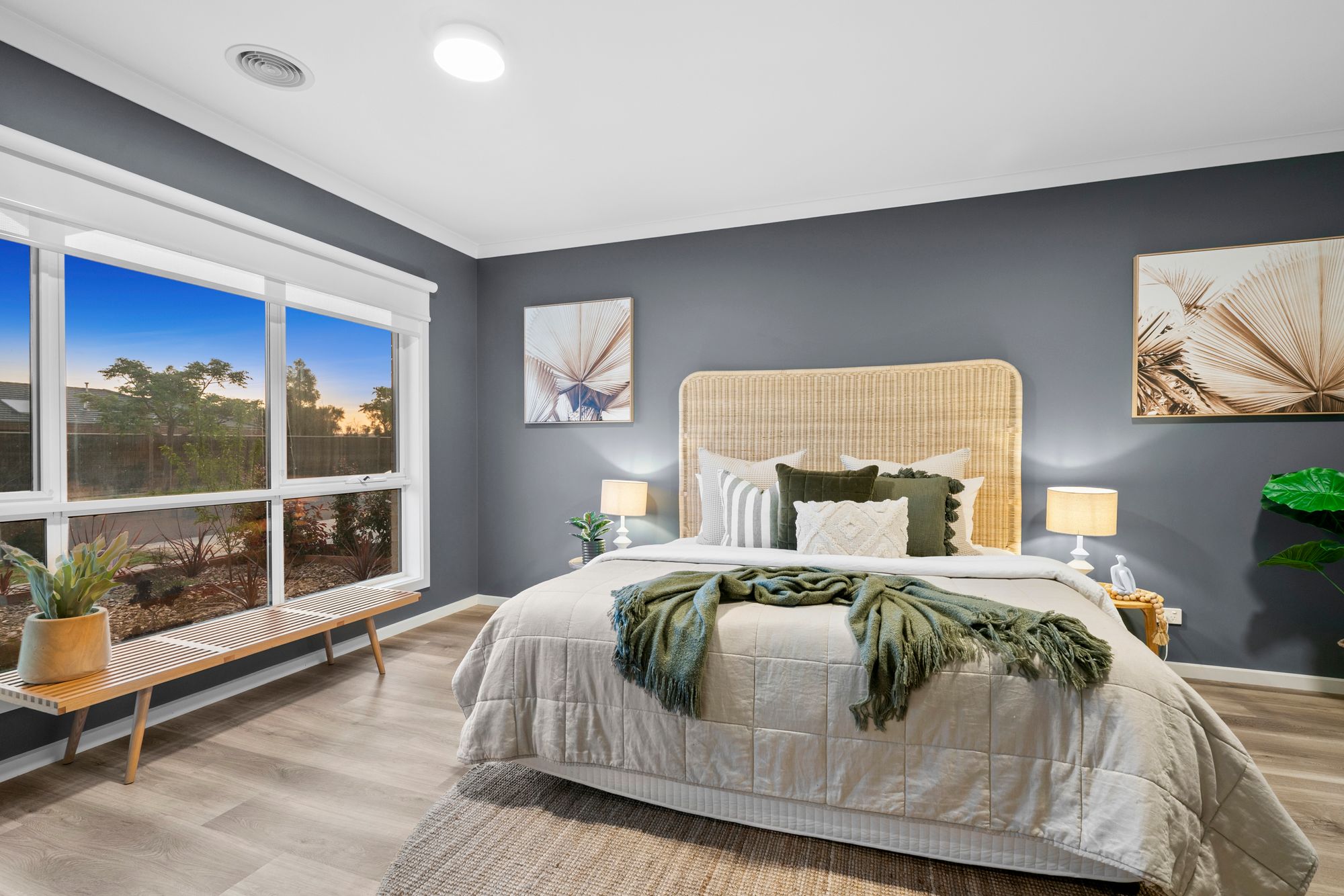 Master Suite Two: Opulent in style and grand in size. ‘His and Hers’ walk-in robes, ducted heating, East facing double-glazed windows with block out blinds. Ensuite with wall to wall shower, single vanity with an abundance of storage, stone benchtop, private toilet.