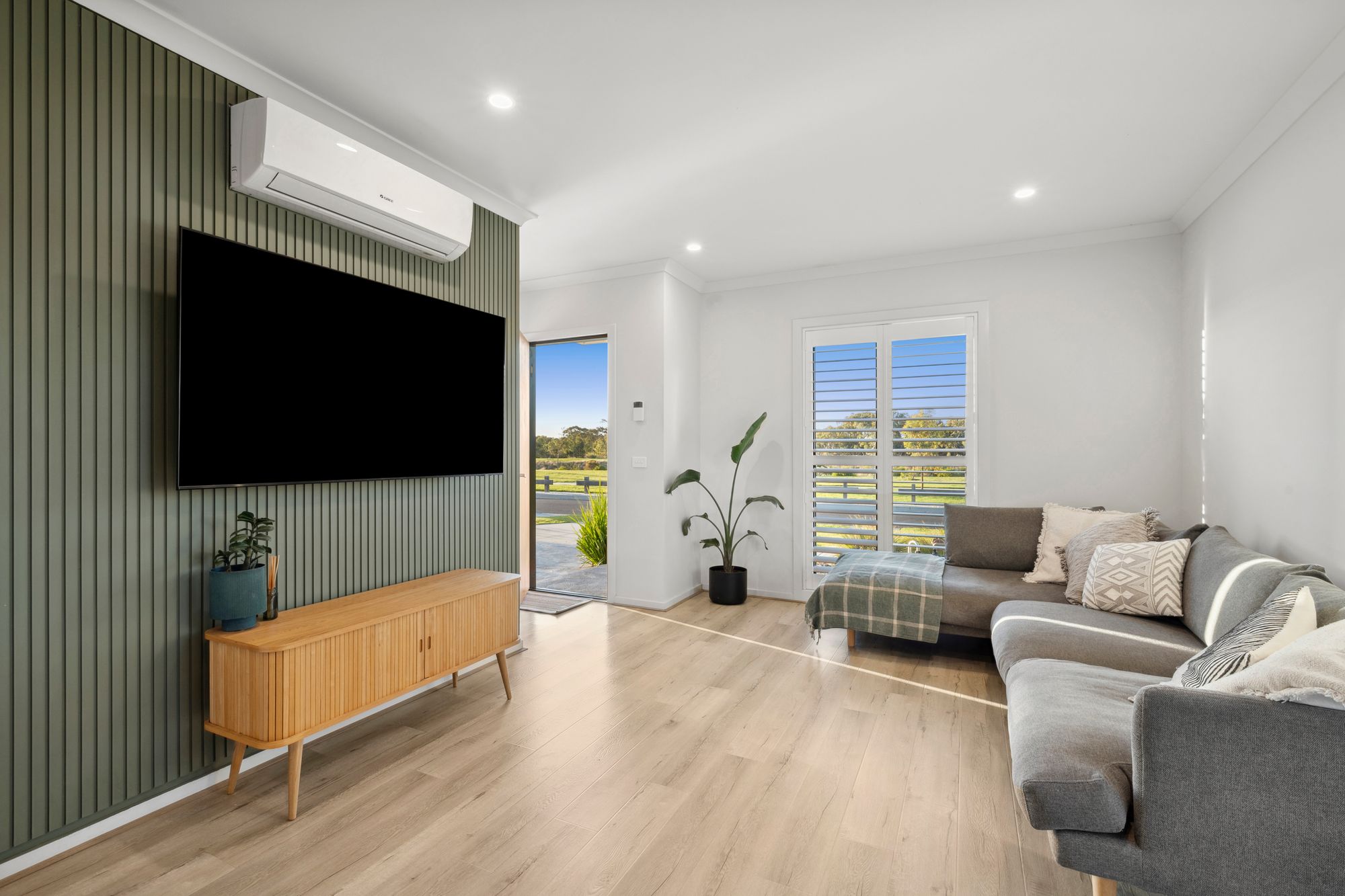 Main Living – Located at the front of the home in conjunction with the kitchen and dining, feature wall paneling, timber laminate flooring, plantation shutter blinds, split-system air-conditioning, downlights