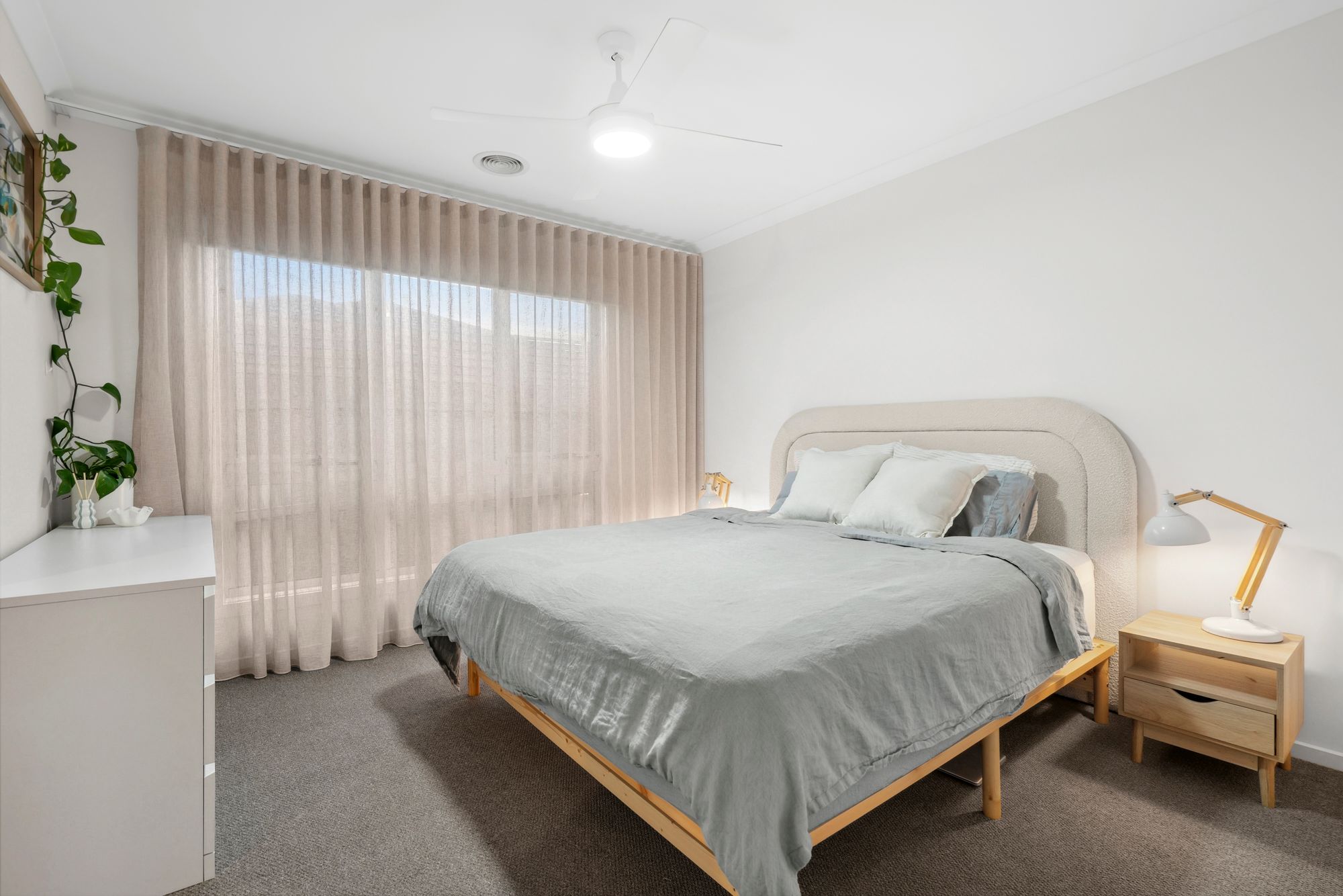 Master: Spacious, raised ceilings, walk in robe, carpet, windows, double glazing, ceiling fan with light, sheer curtains, ducted heating.