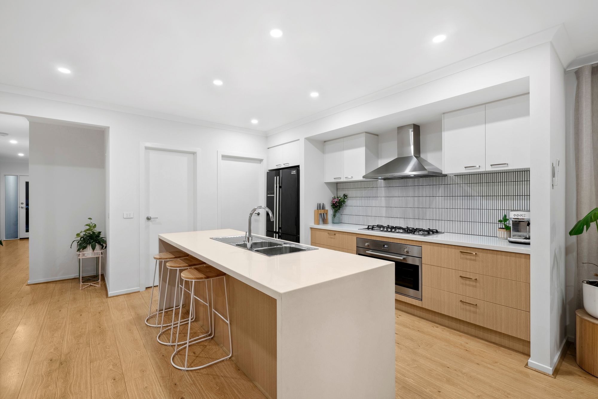 Featuring raised ceilings, double glazing and a thoughtfully upgraded kitchen and bathrooms, this home is a true standout that must be seen in person. The heart of the home showcases a stunning kitchen with a 40mm stone island waterfall benchtop, pot drawers, a walk-in pantry. Flow effortlessly from the kitchen into the living area and dedicated dining space, bathed in natural light. Enjoy seamless indoor-outdoor living with sliding stacker doors that open to an undercover alfresco with extended deck and gardens—ideal for year-round entertaining. A spacious second living room offers flexibility as a theatre, playroom, or private retreat, catering to all your family needs.