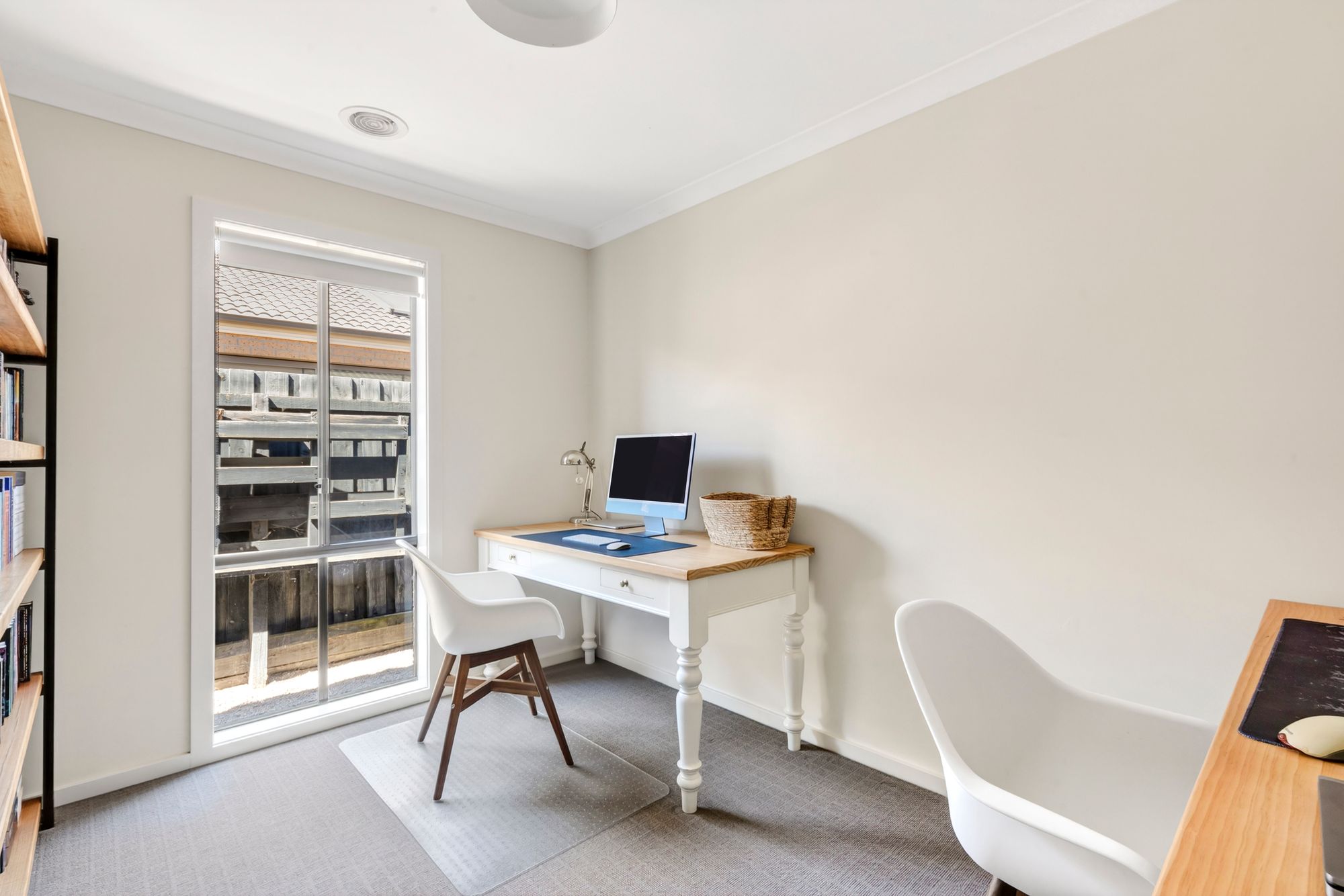 Large open study, ducted heating, evaporative cooling, carpet flooring, roller blinds, high ceilings