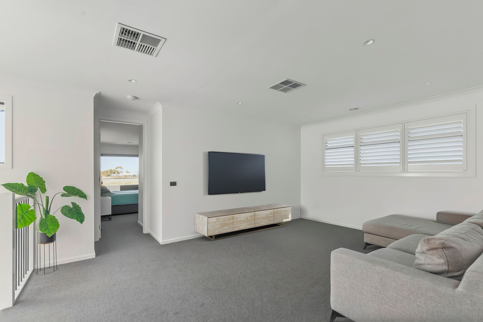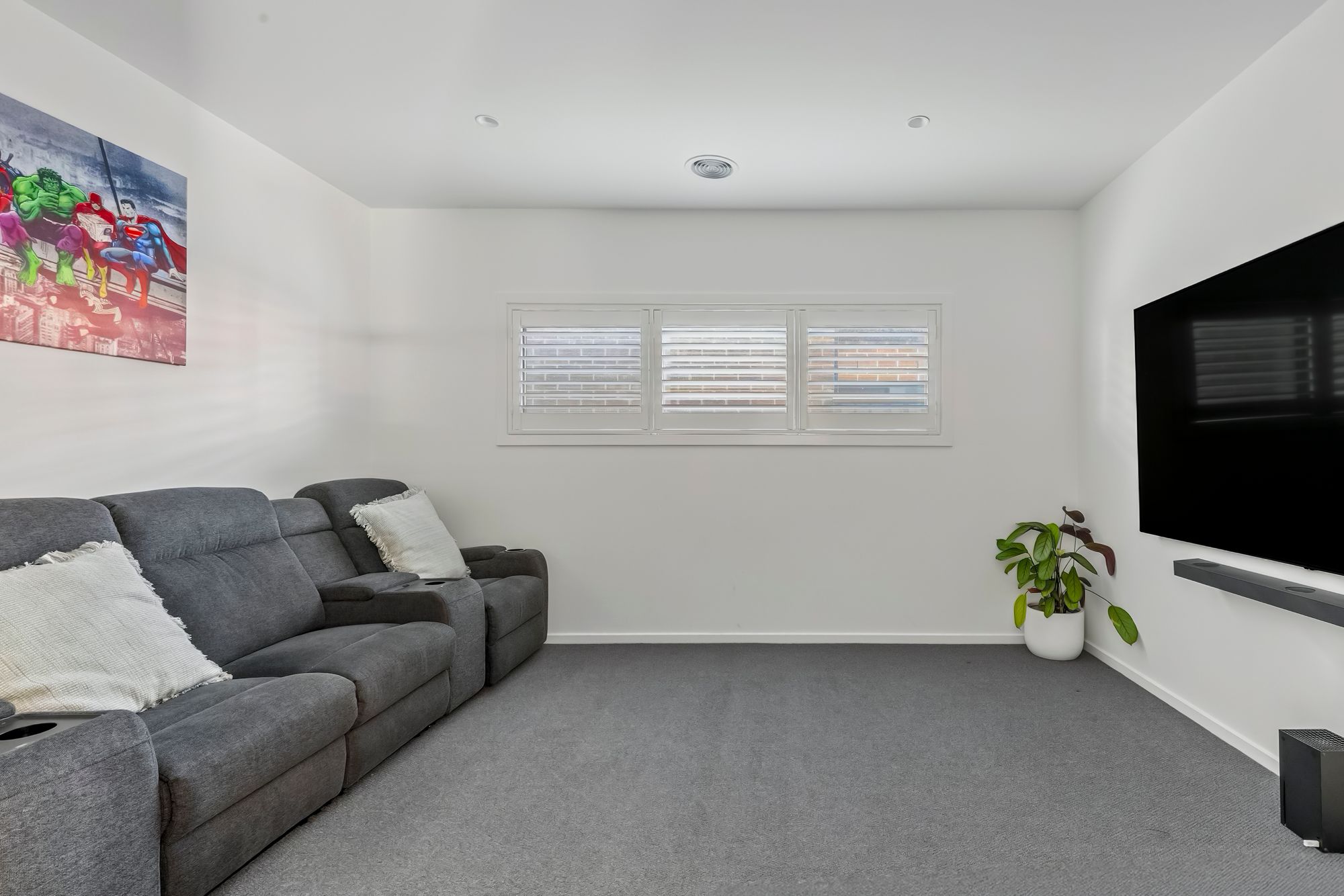 Additional Living Spaces: Multiple living zones offer flexibility for families of all sizes, including potential for a home theatre, rumpus, or formal lounge on the lower floor, complete with additional insulation and sound proofing, as well as a children’s retreat on the upper floor. Both offering double glazed highlight windows with plantation shutters, upgraded carpets, downlights, ducted heating. The upper floor also offers the additional comfort of evaporative cooling.