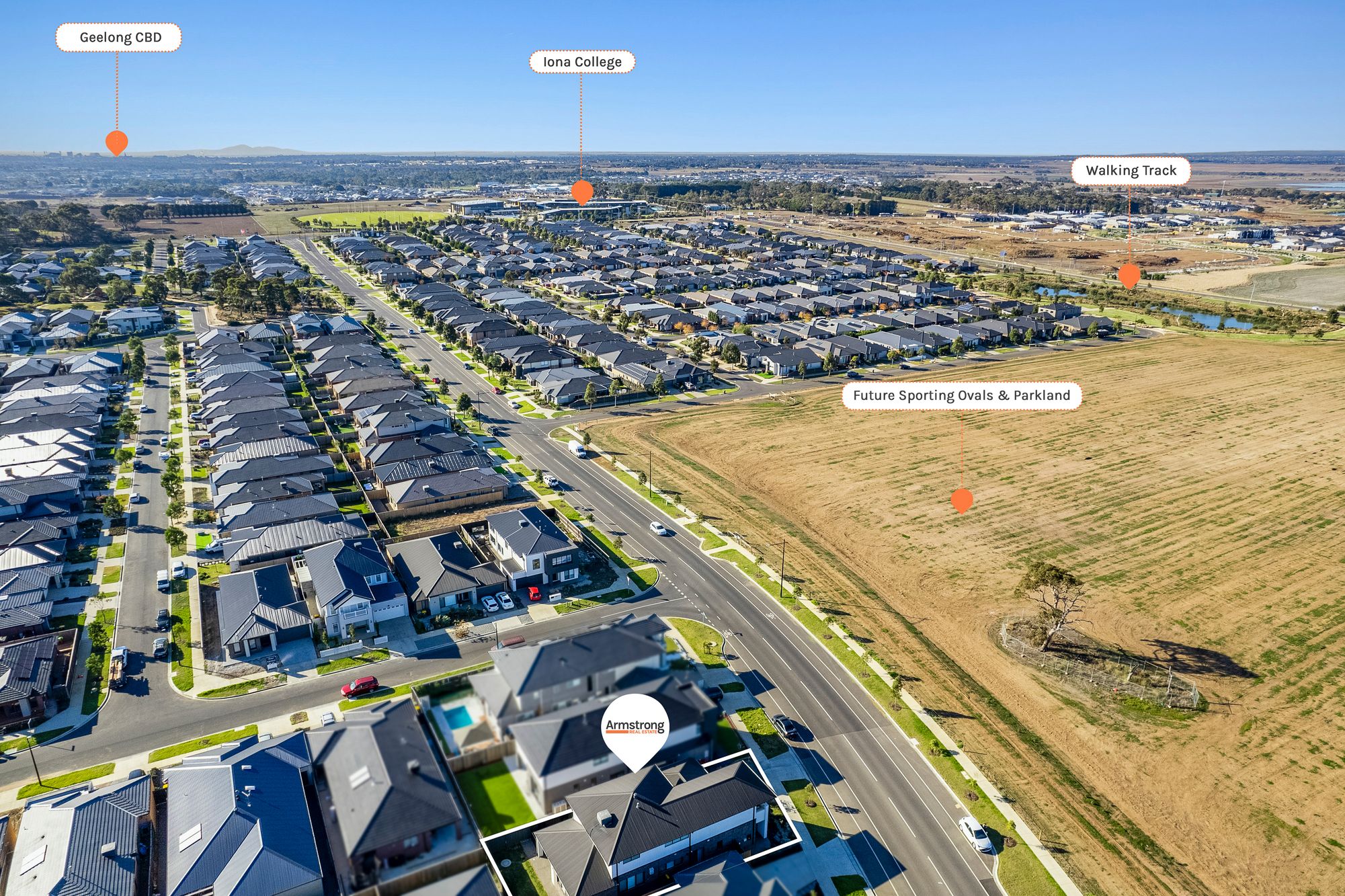 Close by local facilities: Iona College, Geelong Lutheran College, Armstrong Creek School, Oberon High School, Armstrong Creek Town Centre, The Village Warralily, nearby walking and bike paths, future sporting, retail and community precincts. A short drive to the coastal beaches in Torquay and 15 minutes to the Geelong CBD.