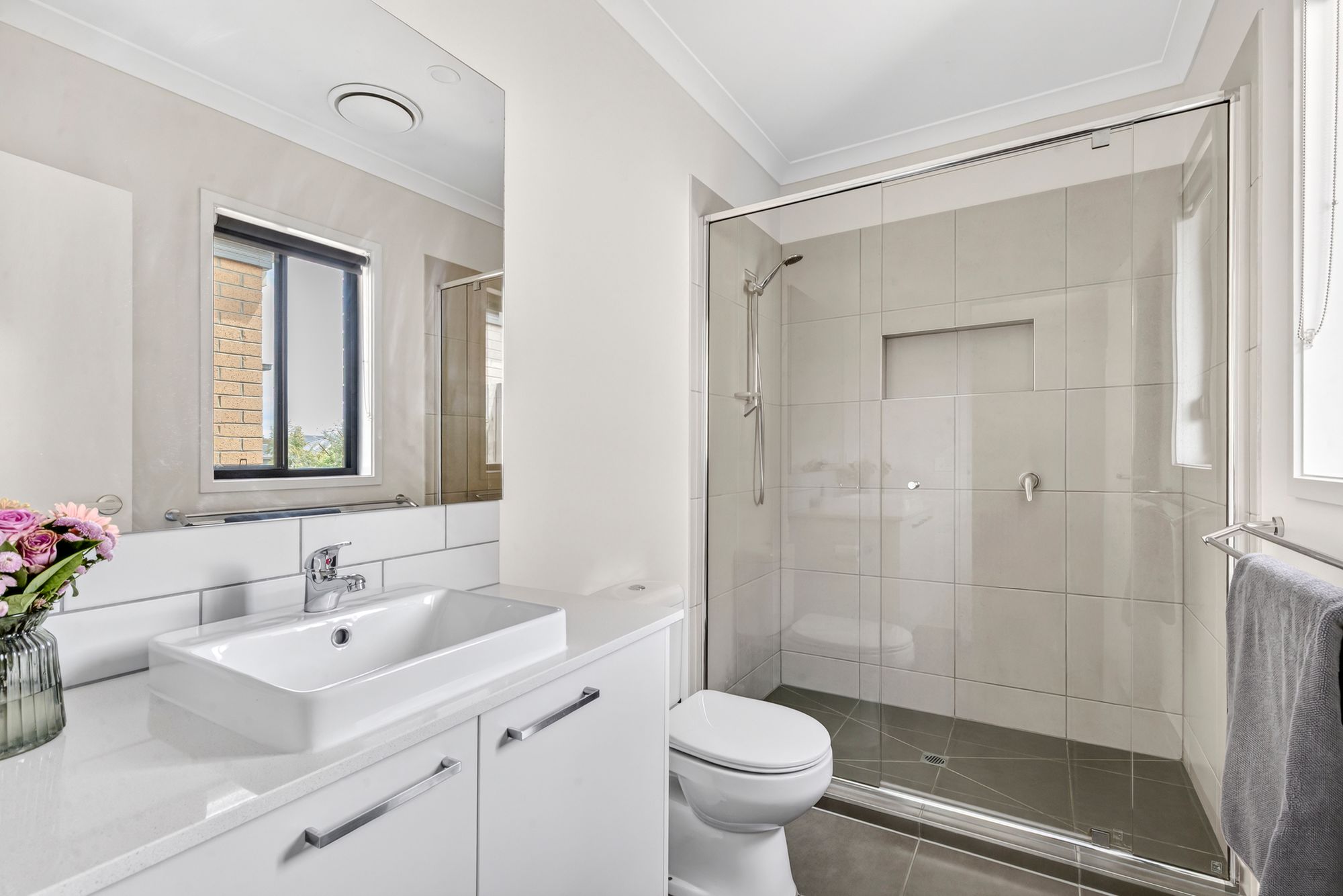 Additional Bathrooms: The central bathroom is finished with quality fixtures and practical design, offering a single vanity with 20mm stone benchtop, cabinetry, mirrored splashback, raised bath and spacious shower. A wide window with roller blinds provides both light and privacy, while the home also benefits from a separate toilet for added convenience.
