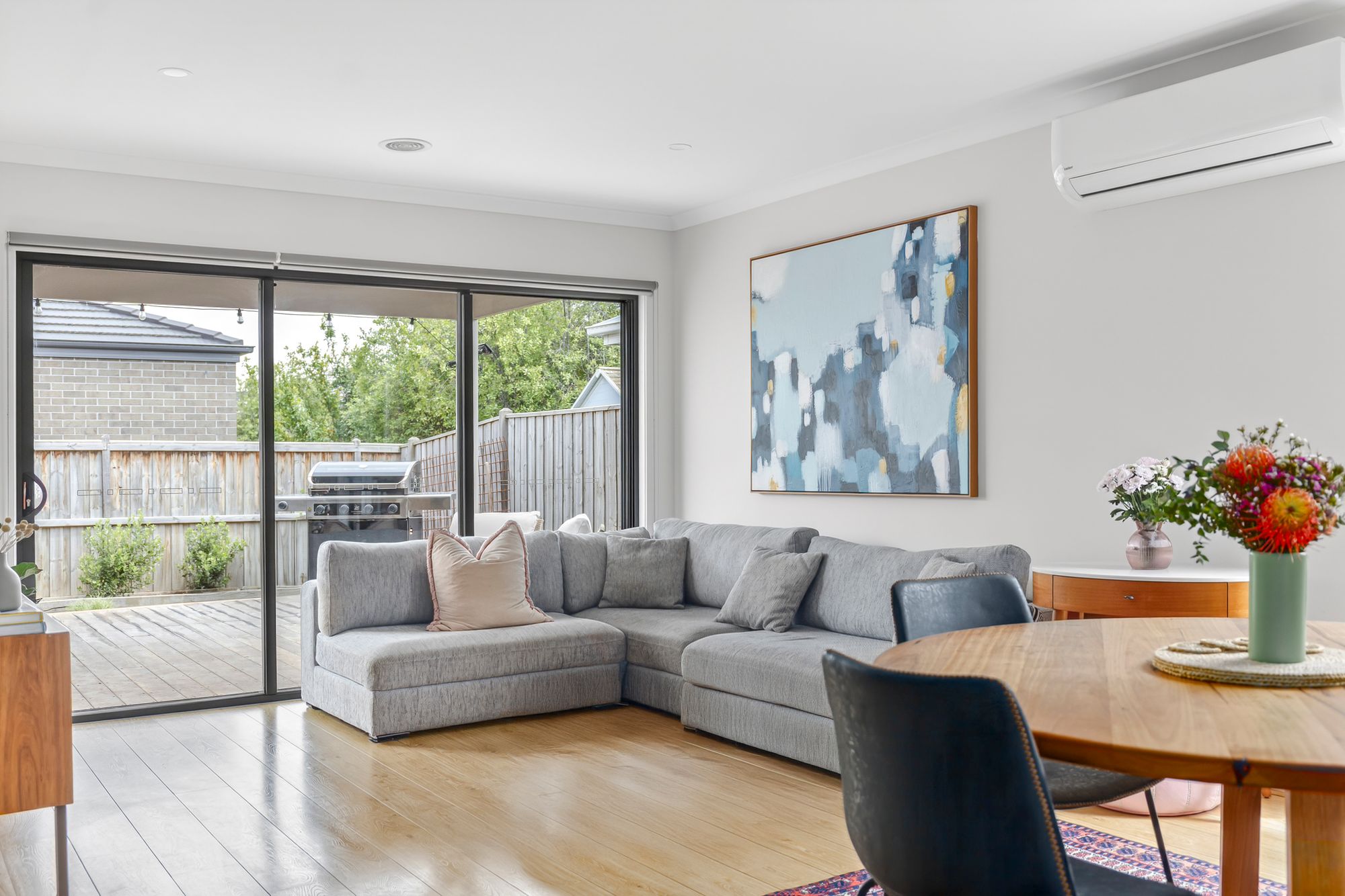Additional Living Space: Offering flexibility for families, the additional living zone is ideal as a second lounge, kids’ retreat or home office. Featuring high ceilings, timber look flooring, ducted heating and downlights, this inviting space is bathed in morning sun through East facing windows, with a wide window and roller blinds providing both privacy and light control.