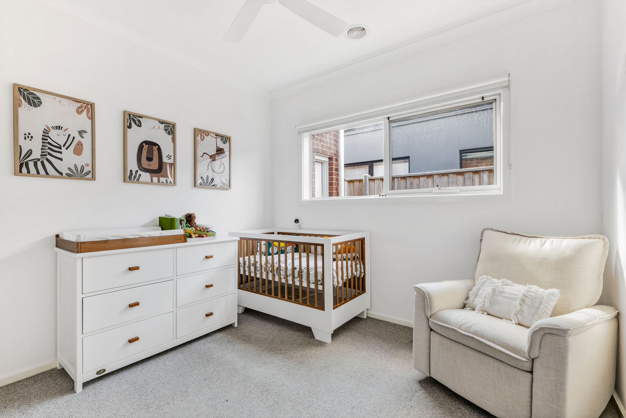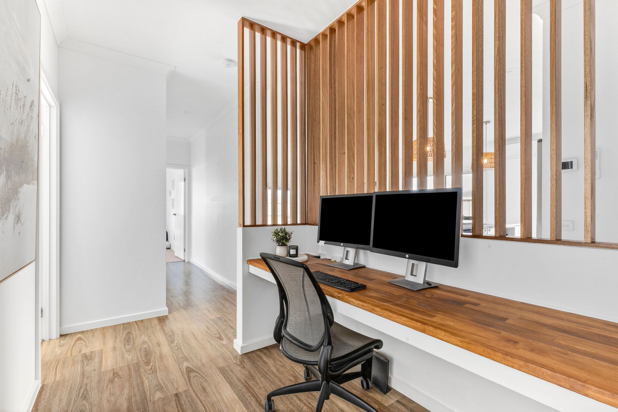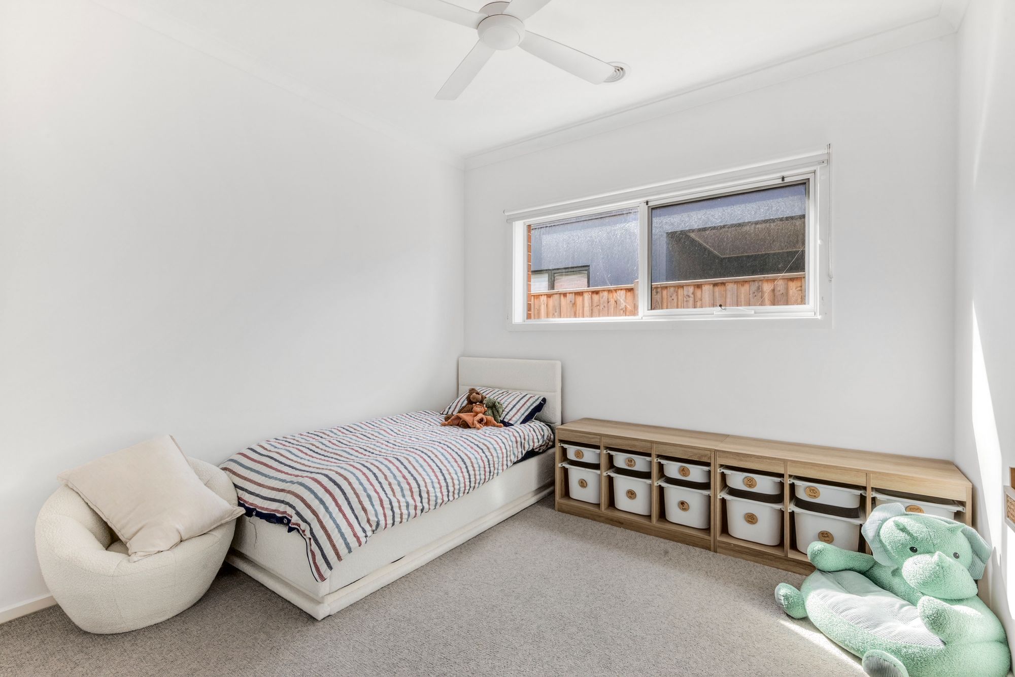 Additional Living Space: A versatile second living zone offers a quiet retreat, complete with plush carpet, high ceilings, and warm afternoon light through west-facing double glazed windows. Comfort is assured with ducted heating and a ceiling fan, while downlights and an additional hidden study nook make this space ideal for relaxing, working, or entertaining.