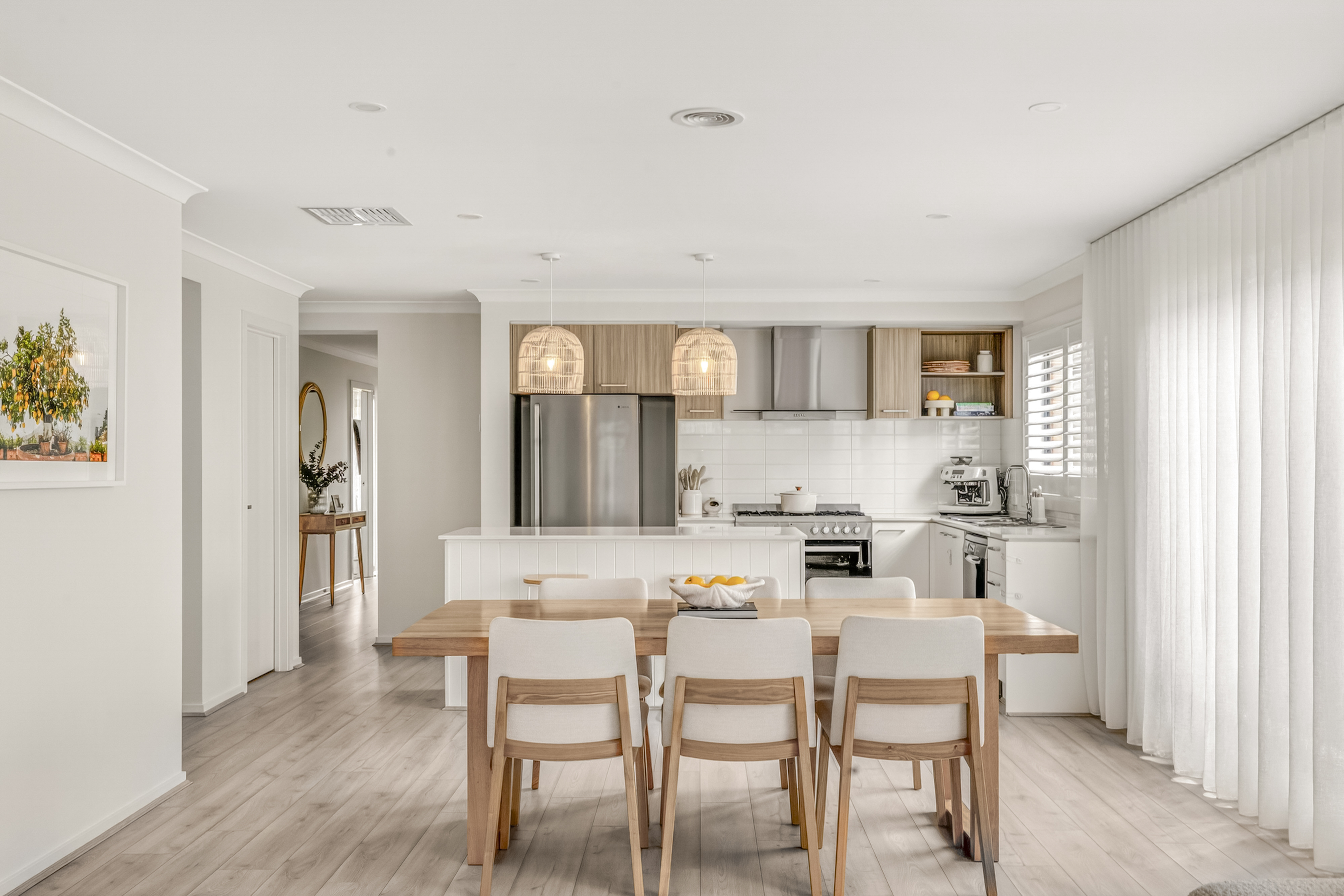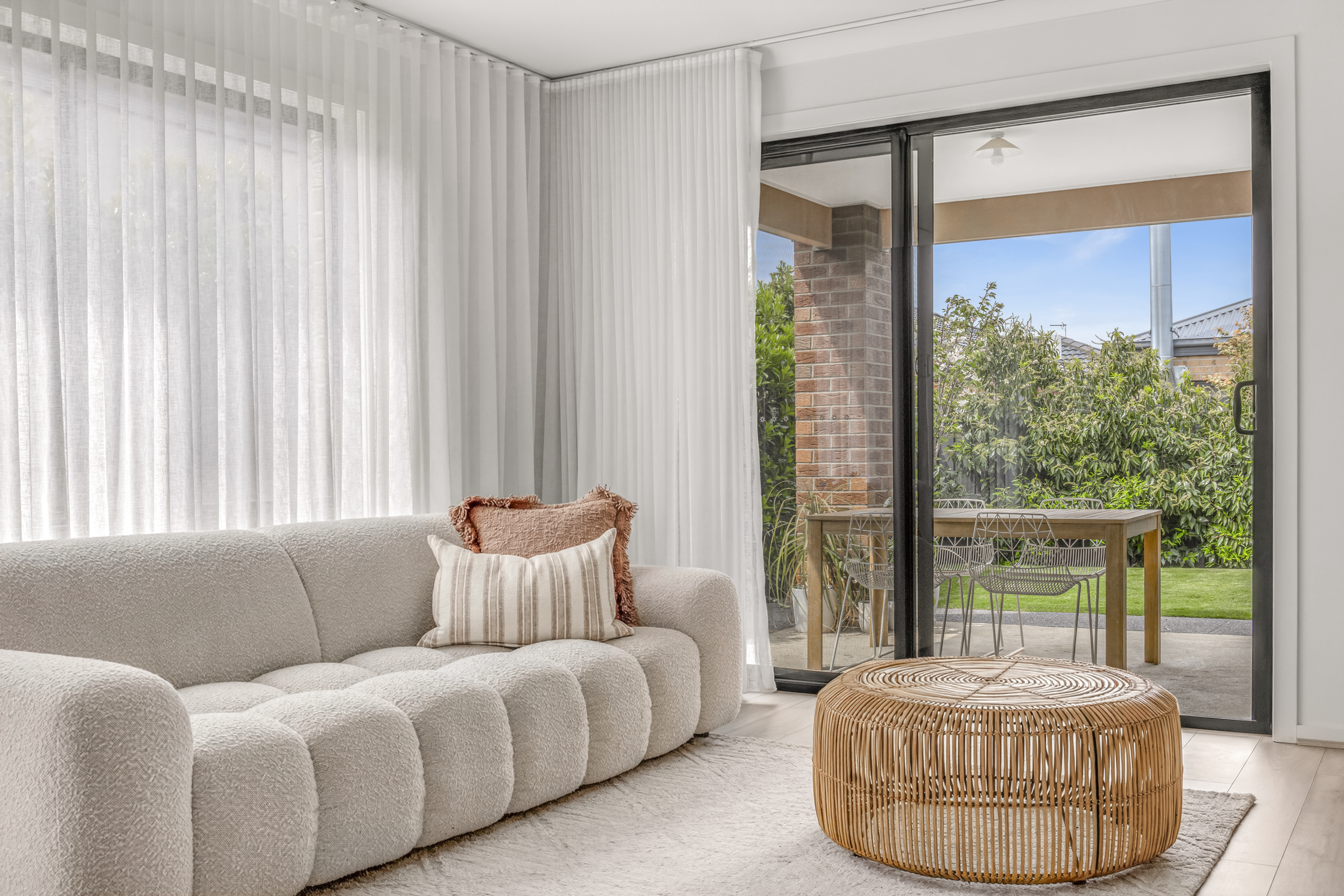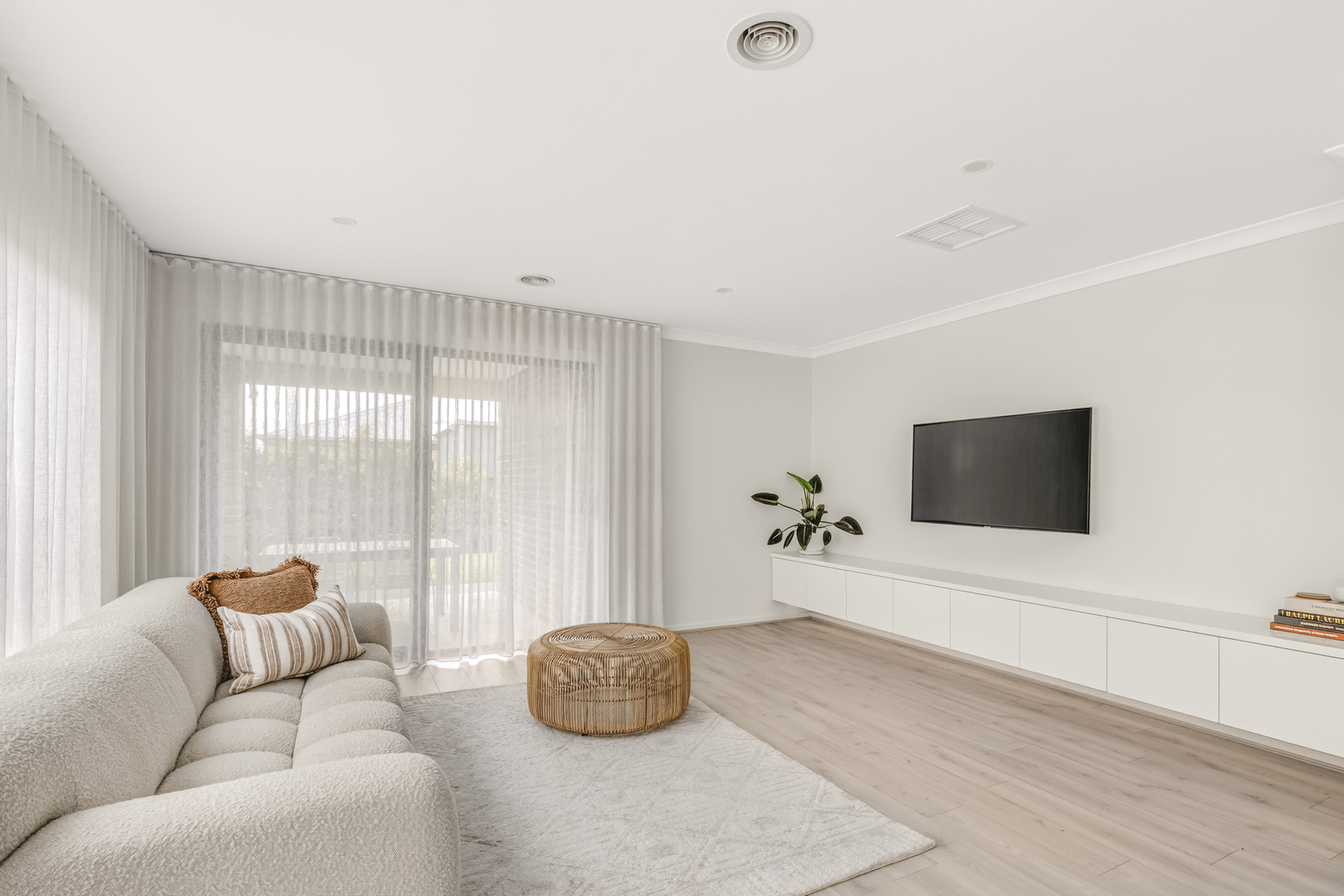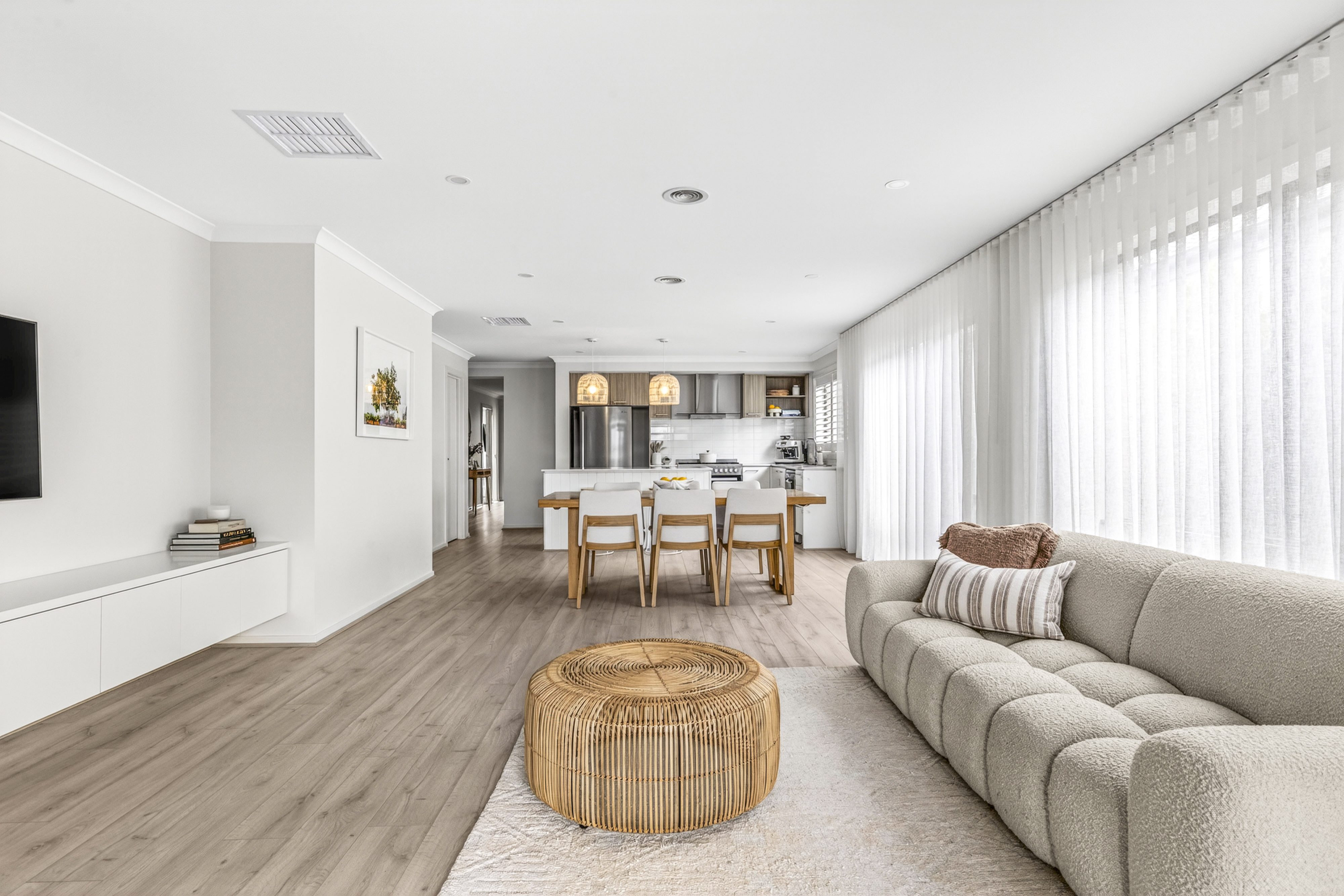 Living/Dining: High Ceilings, open plan, ducted heating, evaporative cooling, built-in custom storage & TV unit designed and installed by local Geelong business SCLK, custom sheer curtains designed and installed by 3228 Blinds, sliding glass doors that open to outdoor area creating an indoor/outdoor flow for entertaining.