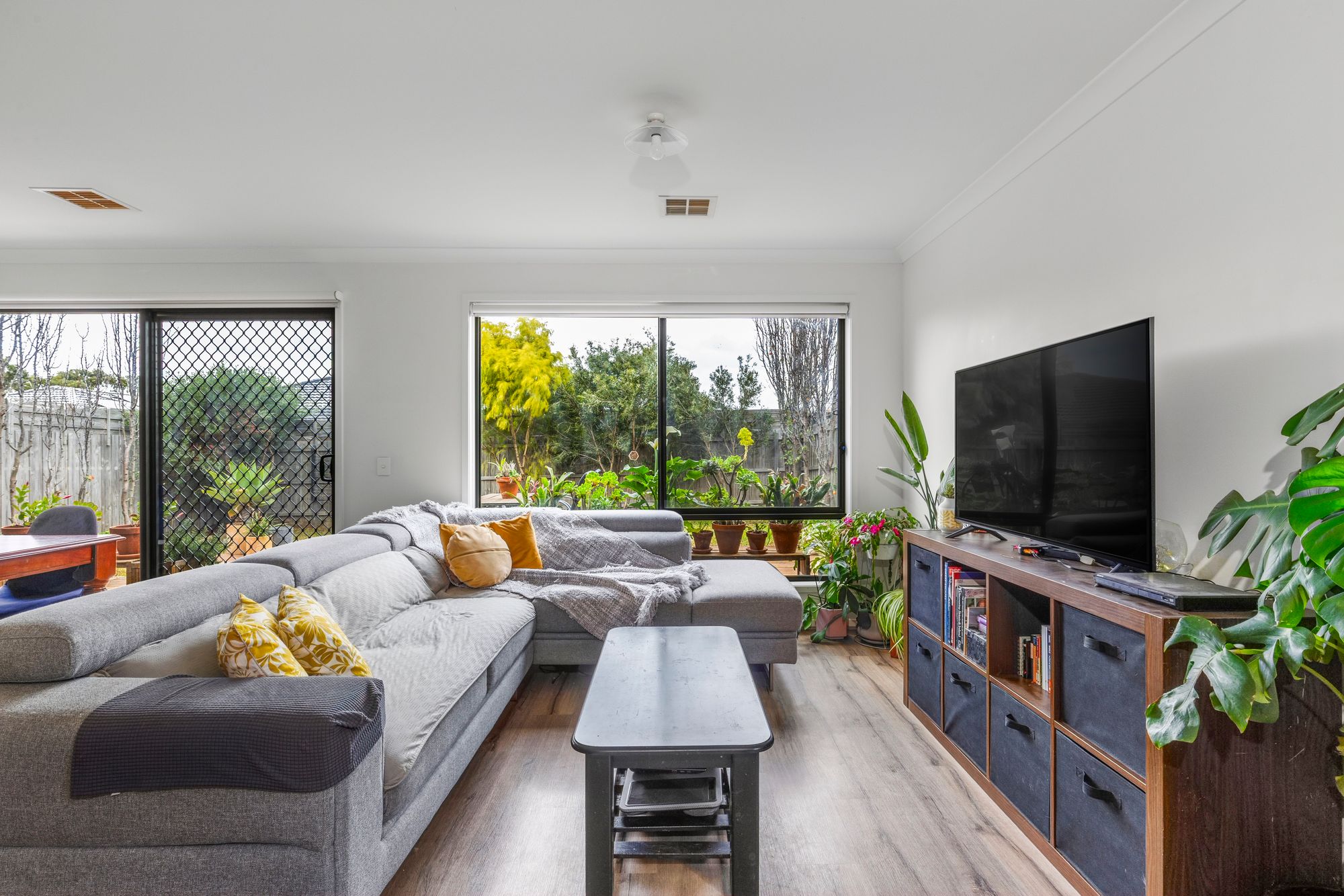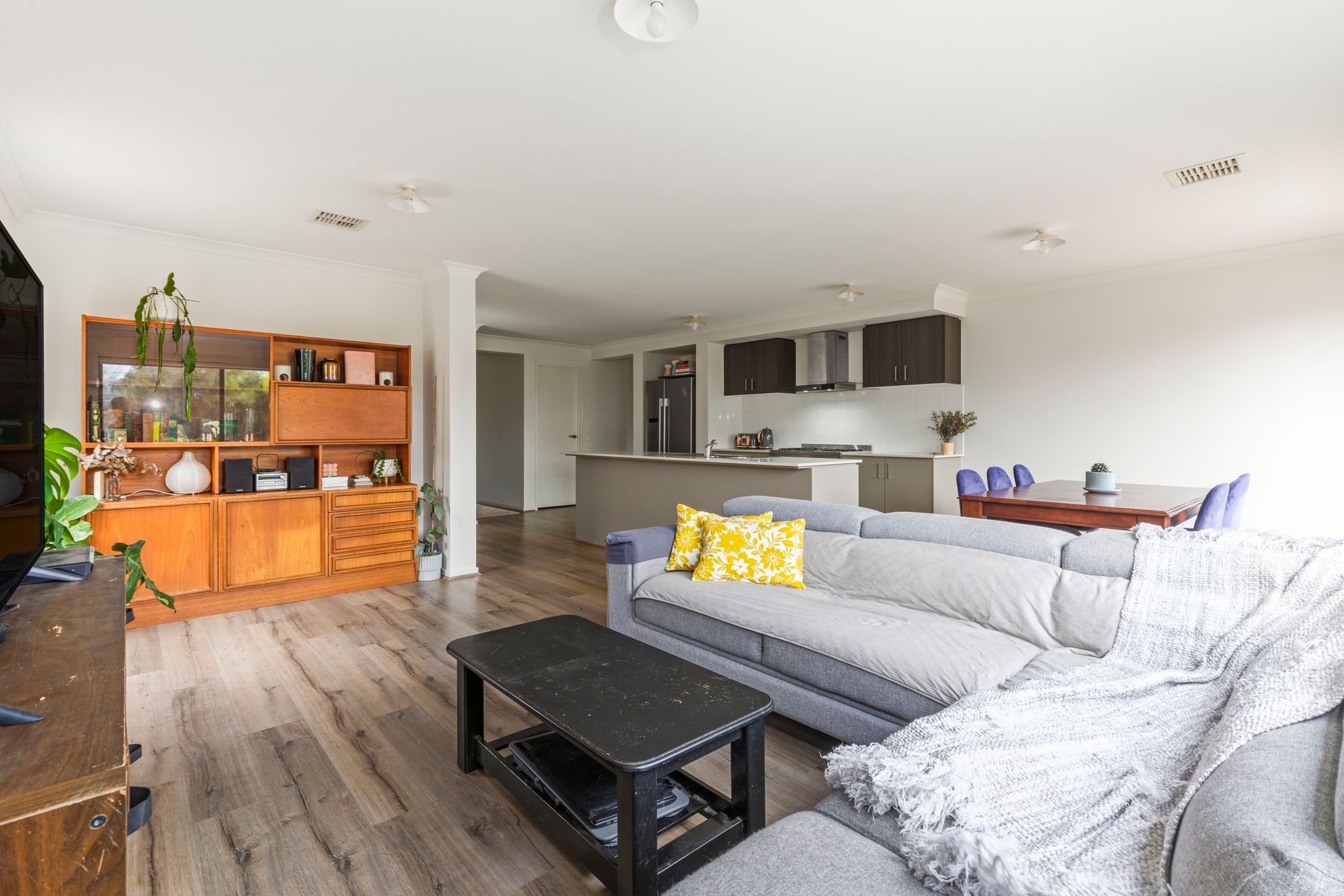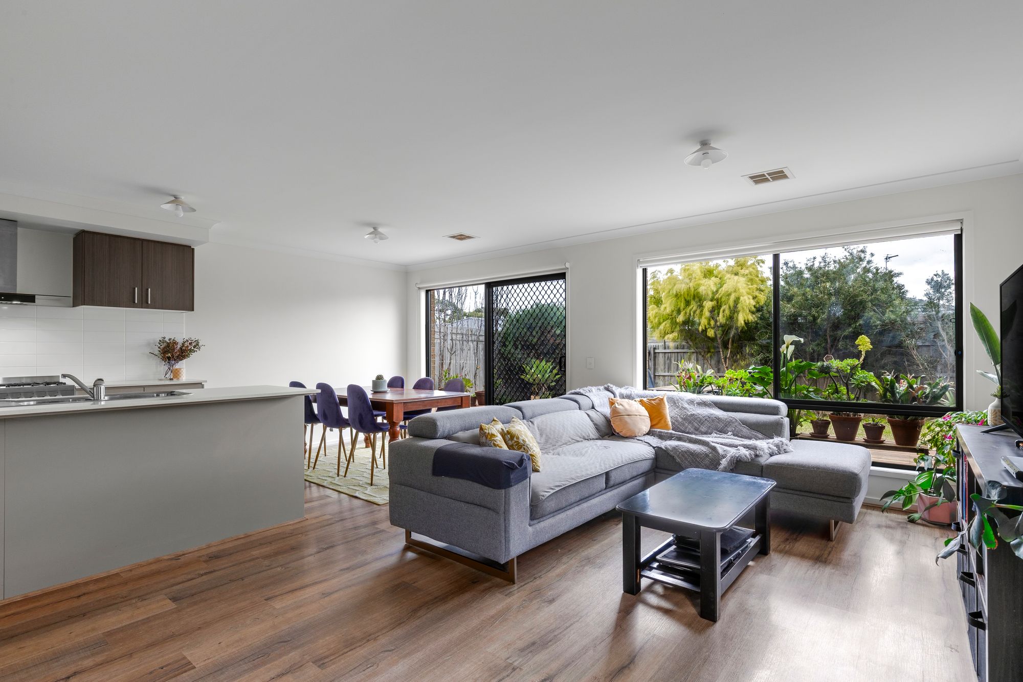 Living/Dining: Sliding doors onto outdoor deck, windows, ducted heating and reverse cycle cooling, privacy and block-out roller blinds, hybrid flooring.