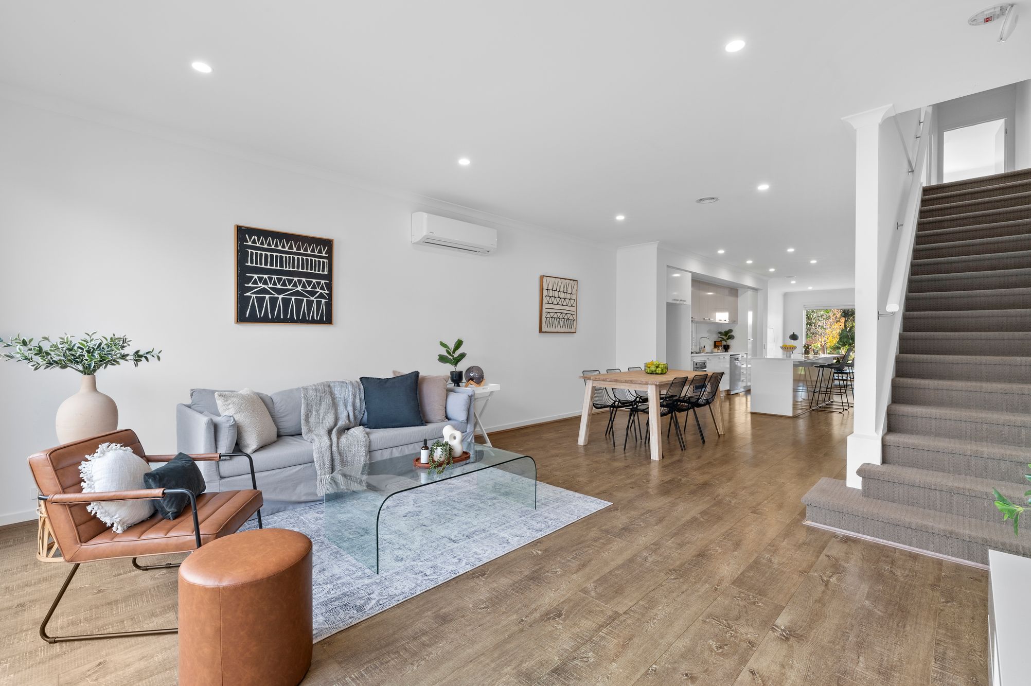 Perfectly desinged for a family. Downstairs, the grand open plan living design offers stacker doors leading out to an enclosed, private courtyard and double car garage. The two living spaces at either end of the floor plan creates a lovely open feeling rarely found.