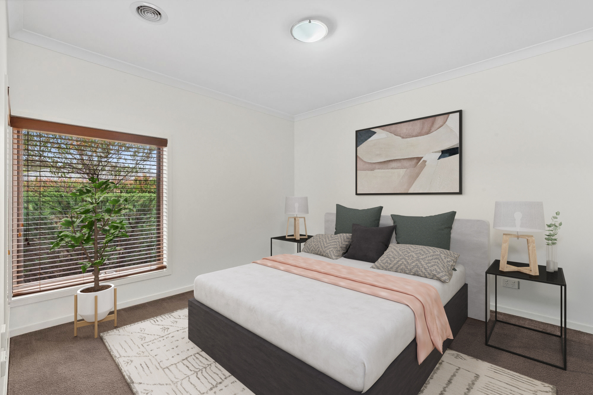 Master: Walk in robe, carpet, windows, Venetian blinds, tv point, powerpoints, ducted heating.