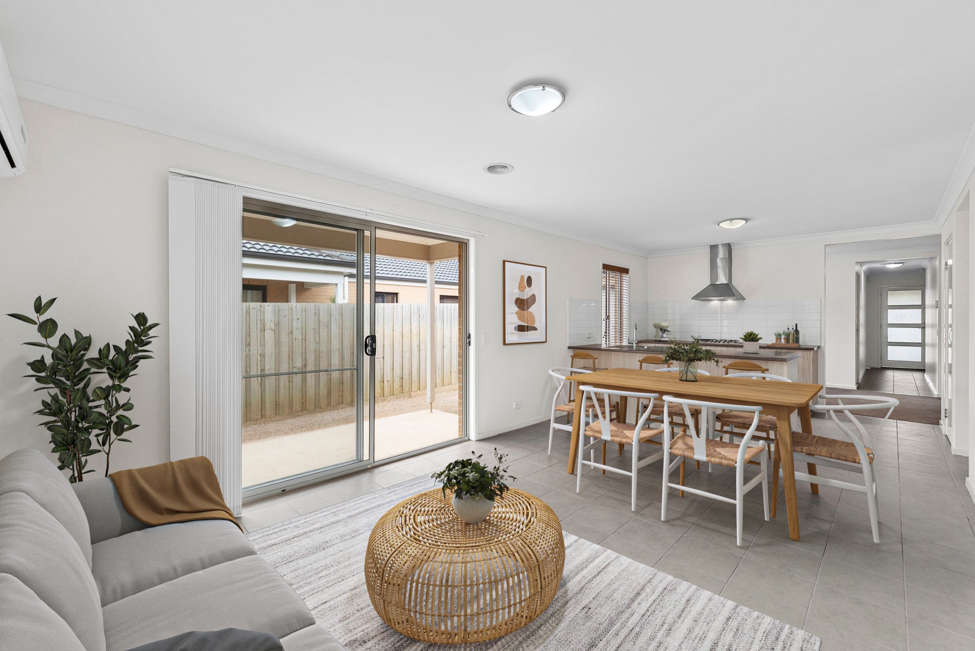 Living/dining: Open plan living, sliding doors to undercover outdoor entertaining area, ducted heating, split system cooling, tv point, Venetian blinds.