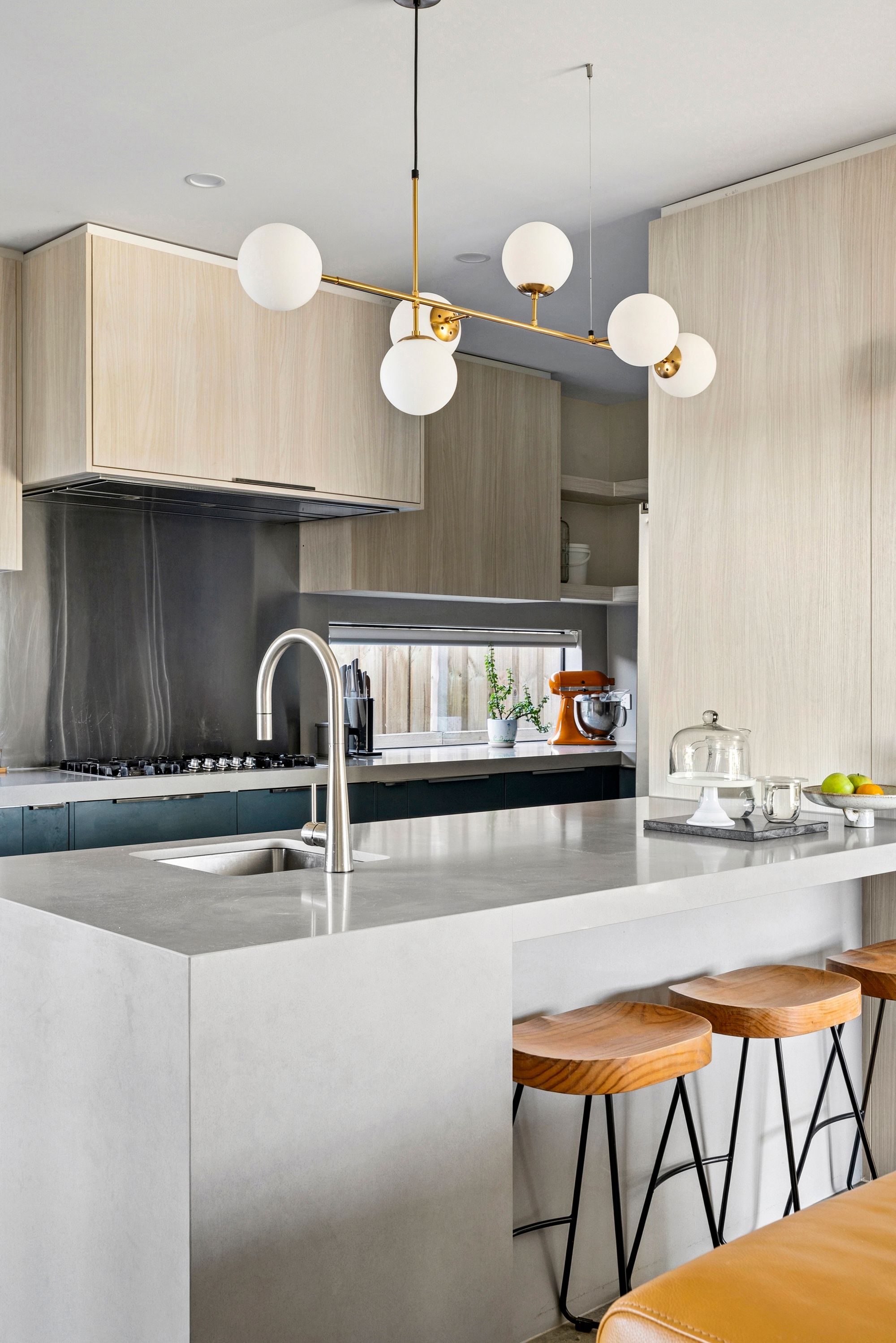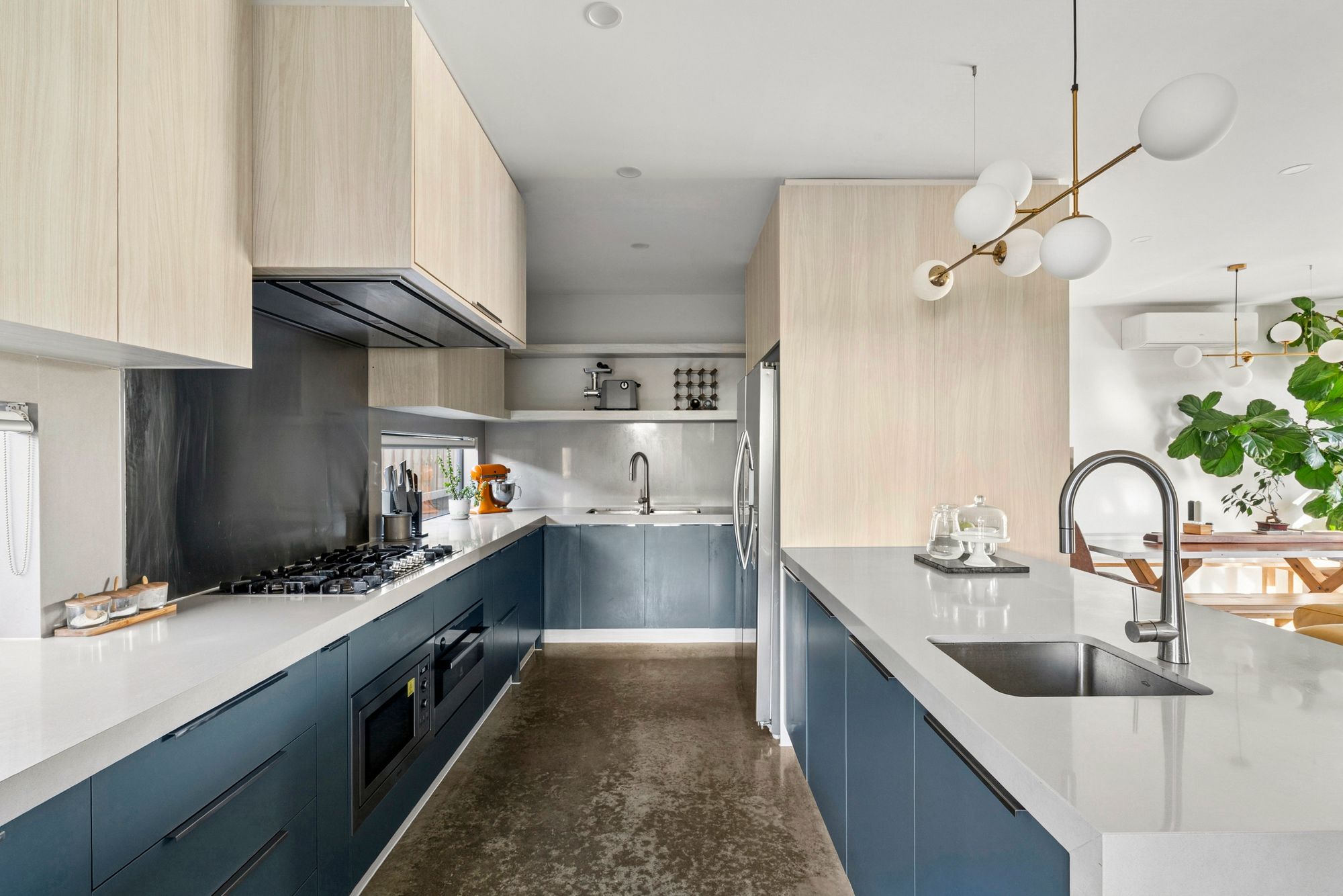 Kitchen: 60mm agglomerate stone benchtop throughout, endless of storage including built in pantry, double cavity fridge, 900mm appliances, stainless steel splash back, breakfast bar overhang, feature lights, downlights, polished concrete floors