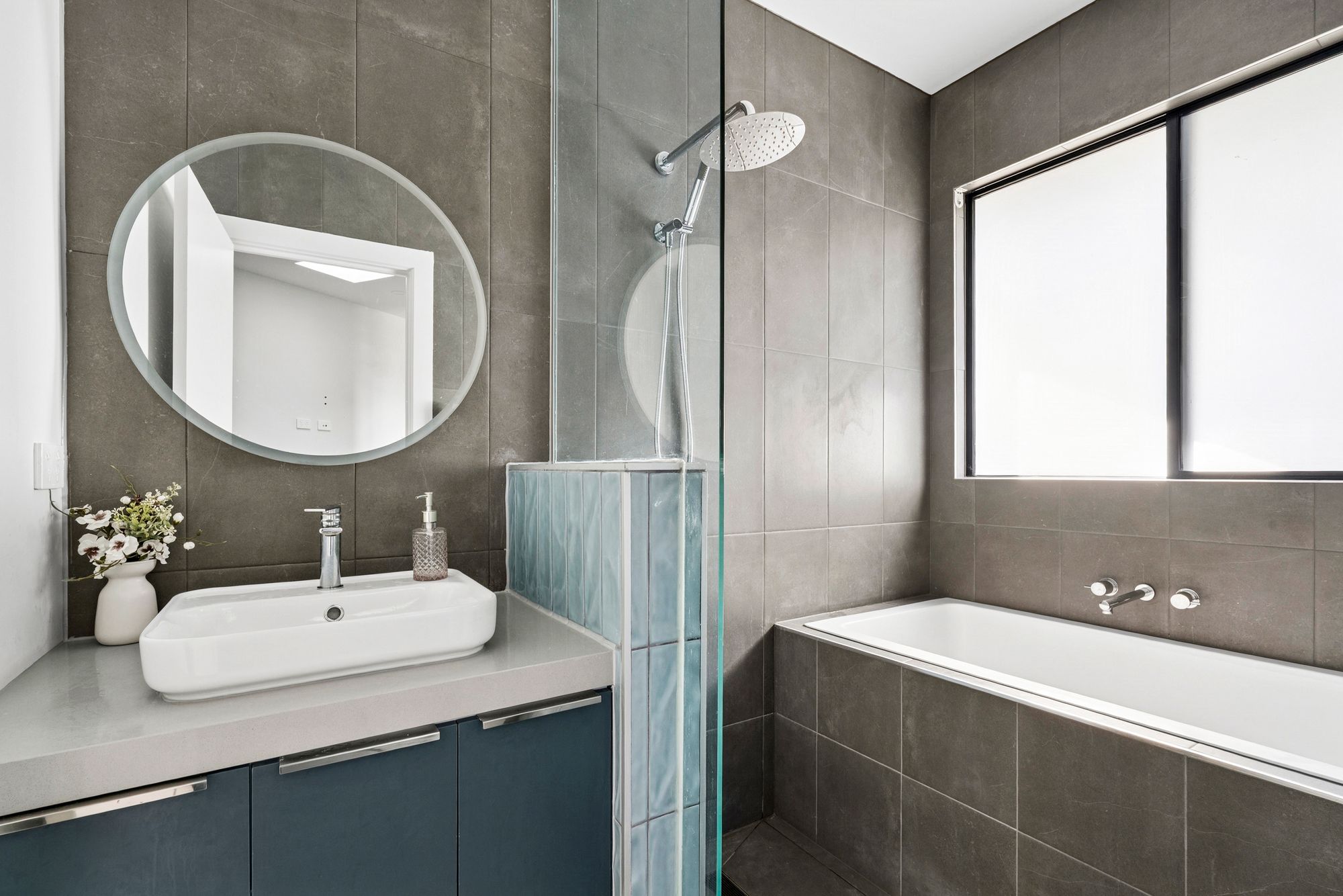 Additional Bathroom: Single vanity with storage, semi frameless mirror, shower, bath, heated lamps