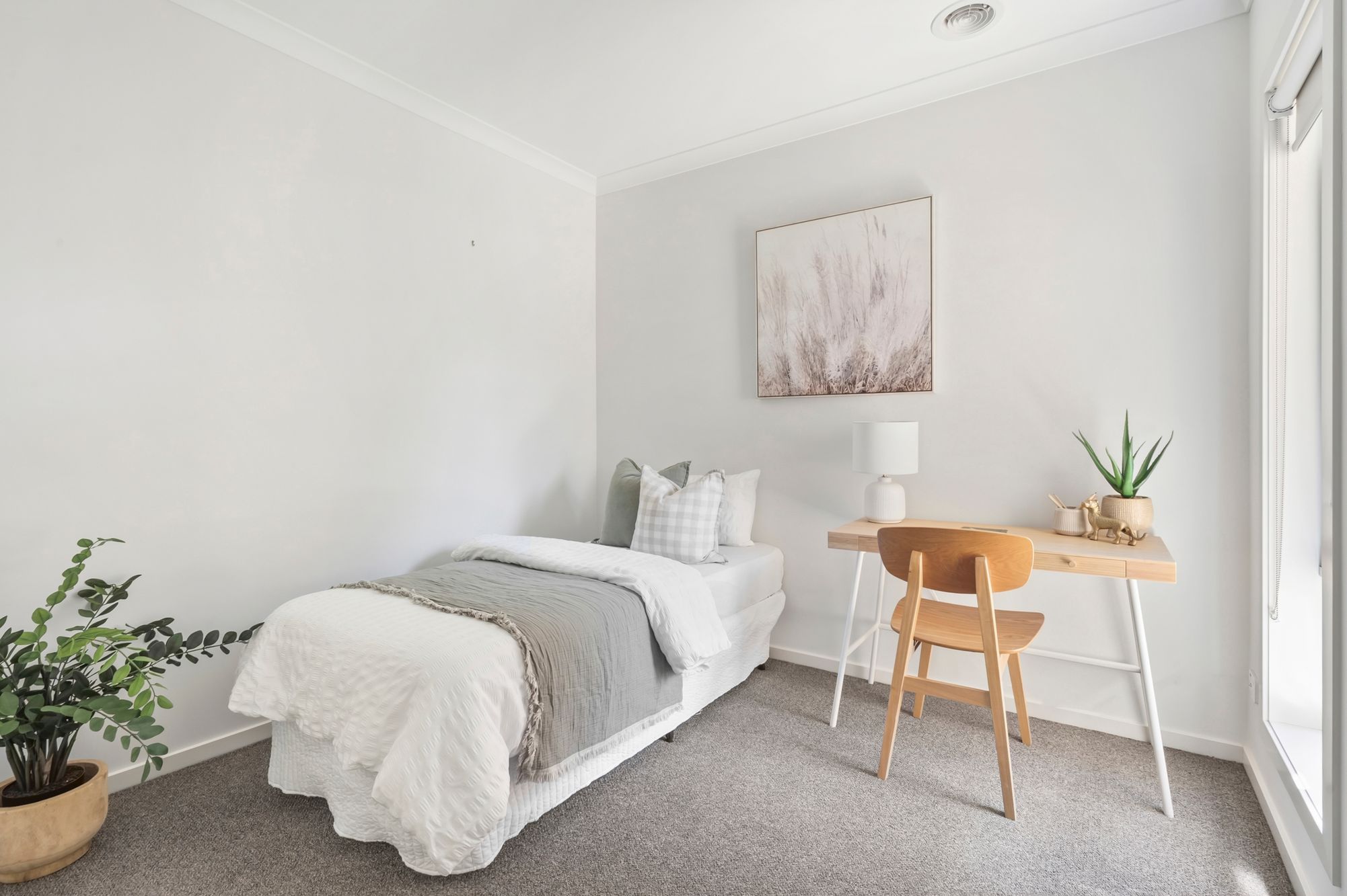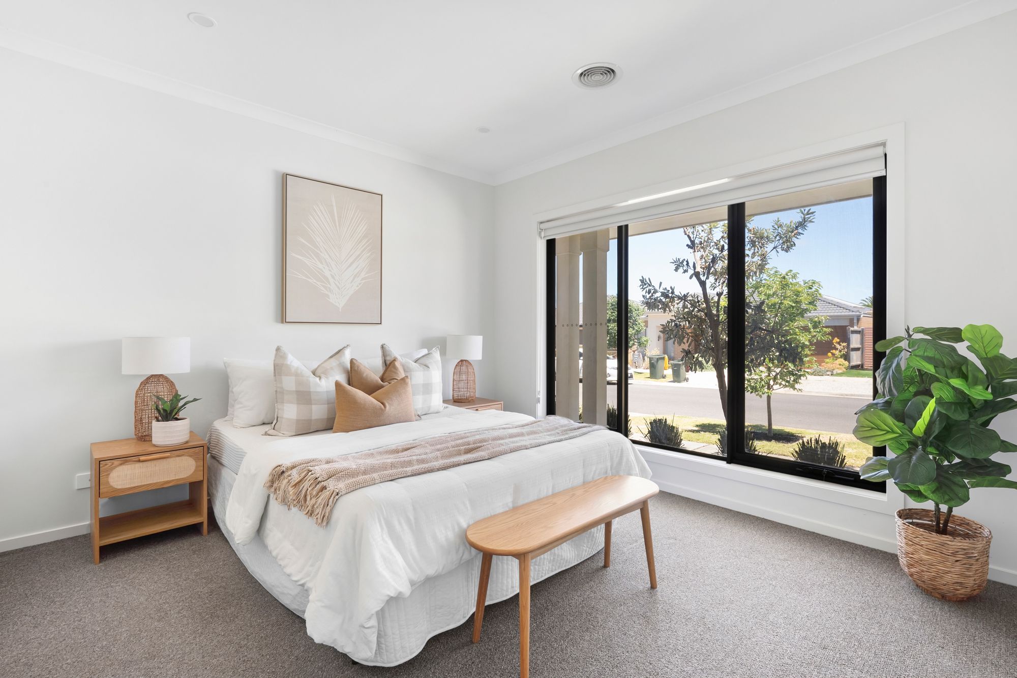Additional Bedrooms: The additional bedrooms are generously sized and well-appointed, each featuring soft carpeting, built-in robes, downlights, and wide windows with roller blinds. Ducted heating services all bedrooms, ensuring comfort and consistency throughout the home.