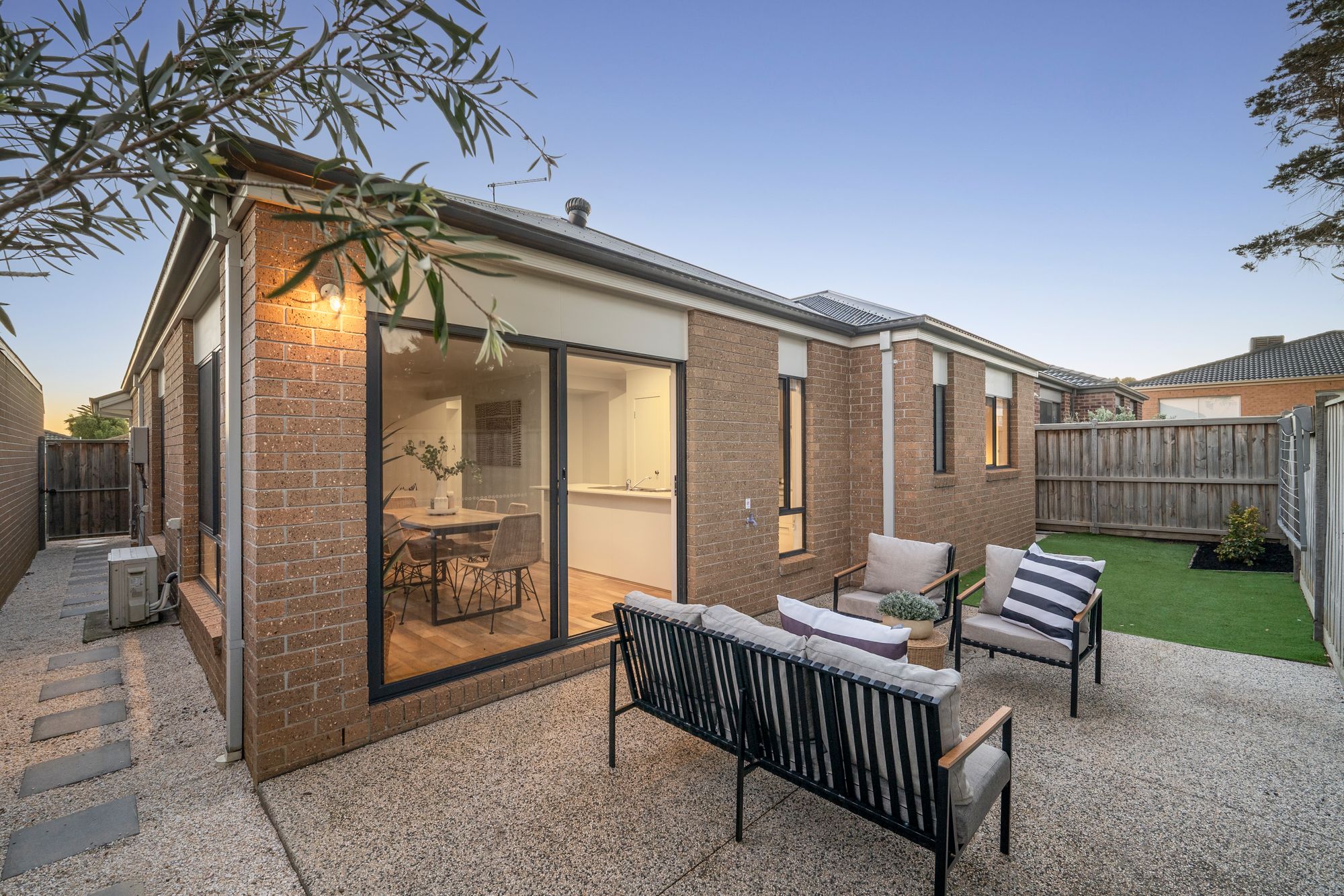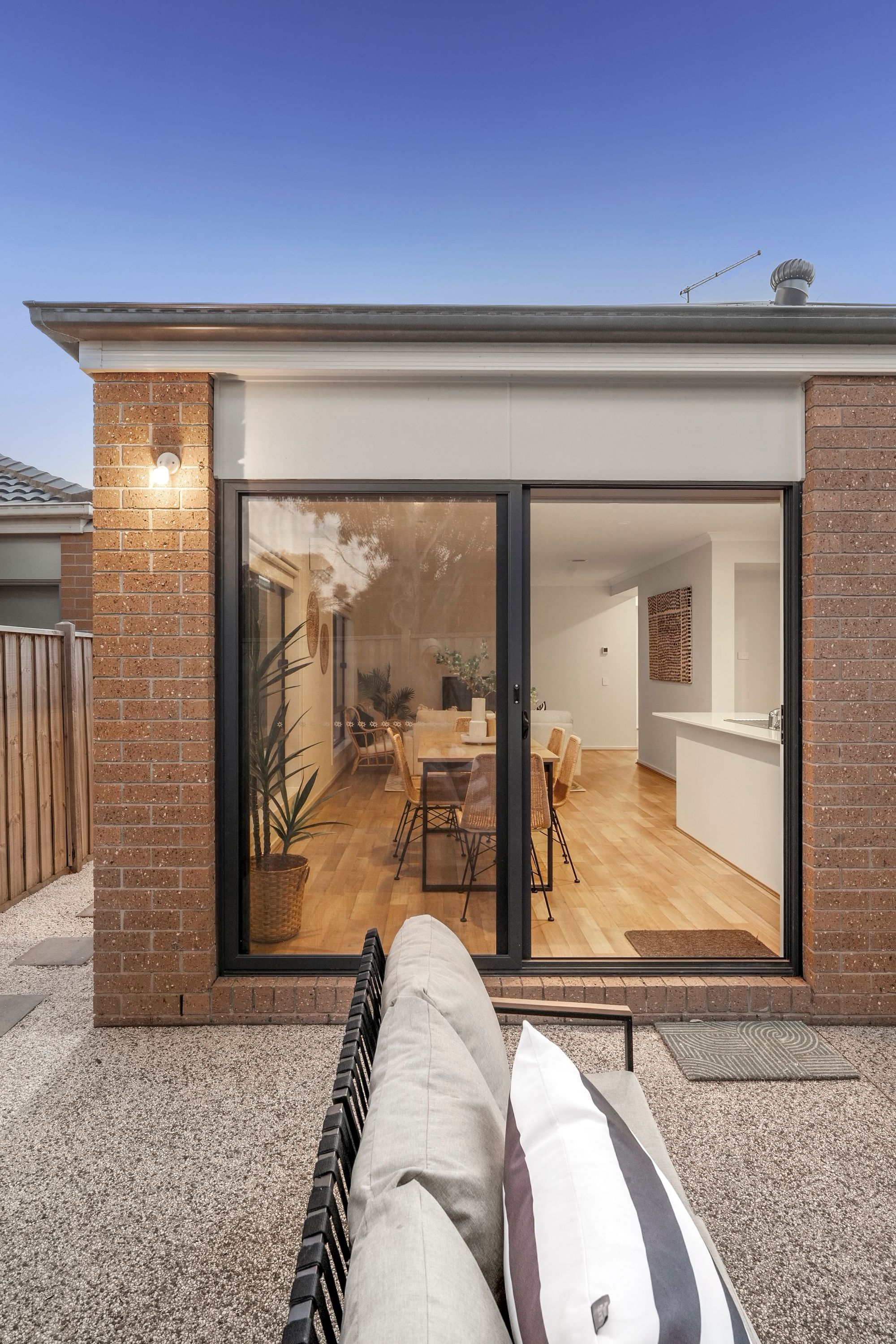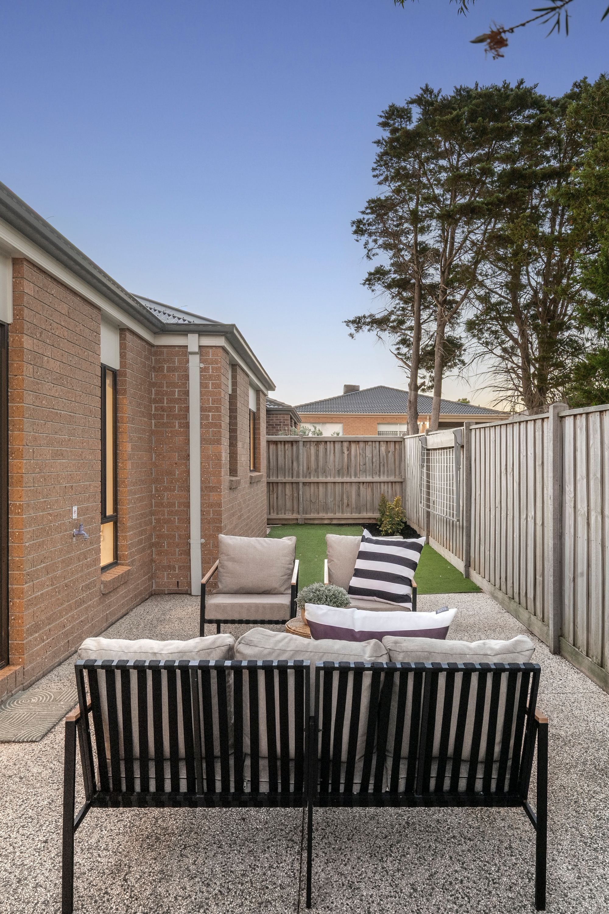 Outdoor: The home showcases a high-end façade, complemented by manicured garden beds with established trees and plants. A concrete driveway leads to the home’s entry, while gated side access provides convenient access through to the rear yard. The north-facing rear yard is designed for low-maintenance enjoyment, featuring manicured garden beds with established plants and trees, synthetic turf, and an exposed aggregate pad to the rear of the home. Backing onto a reserve, the yard enjoys added privacy with no rear neighbours.