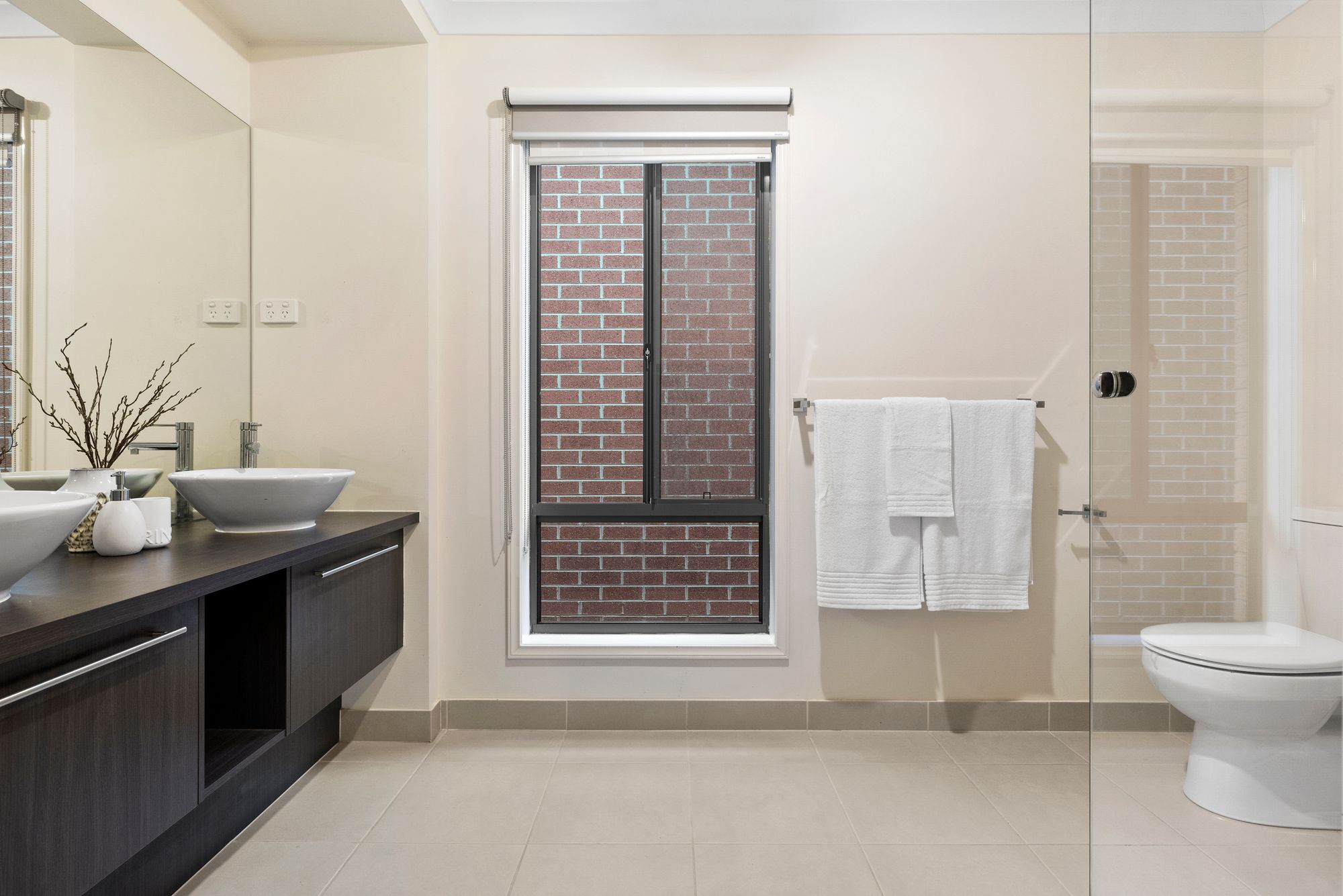 Master bedroom: downlights, dual roller blinds, feature window, carpet, walk in wardrobe, ducted heating, evaporative cooling, Ensuite, tiles, dual roller blinds, semi frameless shower, shower niche, waterfall shower head, chrome fittings, mirror splash back, laminate benchtop, twin vanity, open toilet