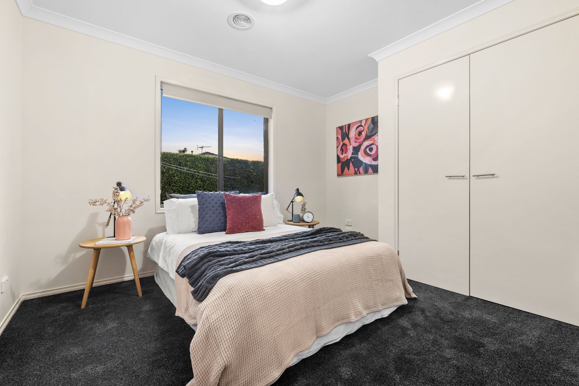 1st Additional bedroom: ducted heating, evaporative cooling, batten lights, carpet, roller blinds, built in wardrobes with mirror sliding doors, wall mounted tv