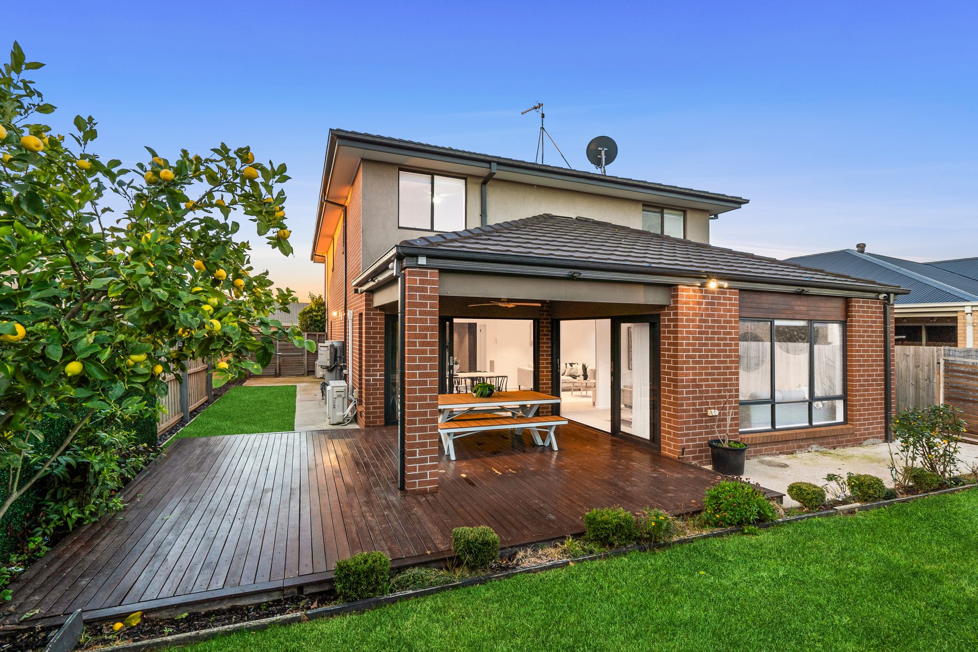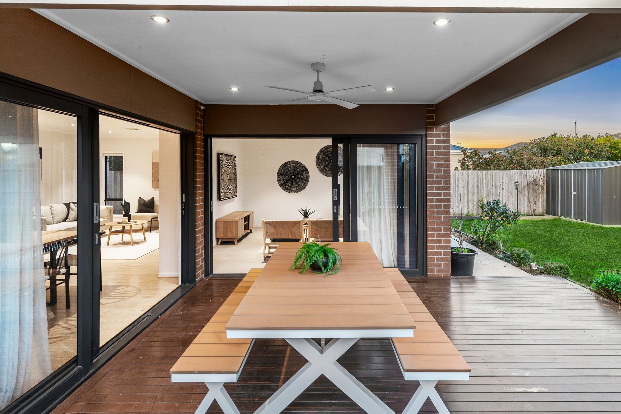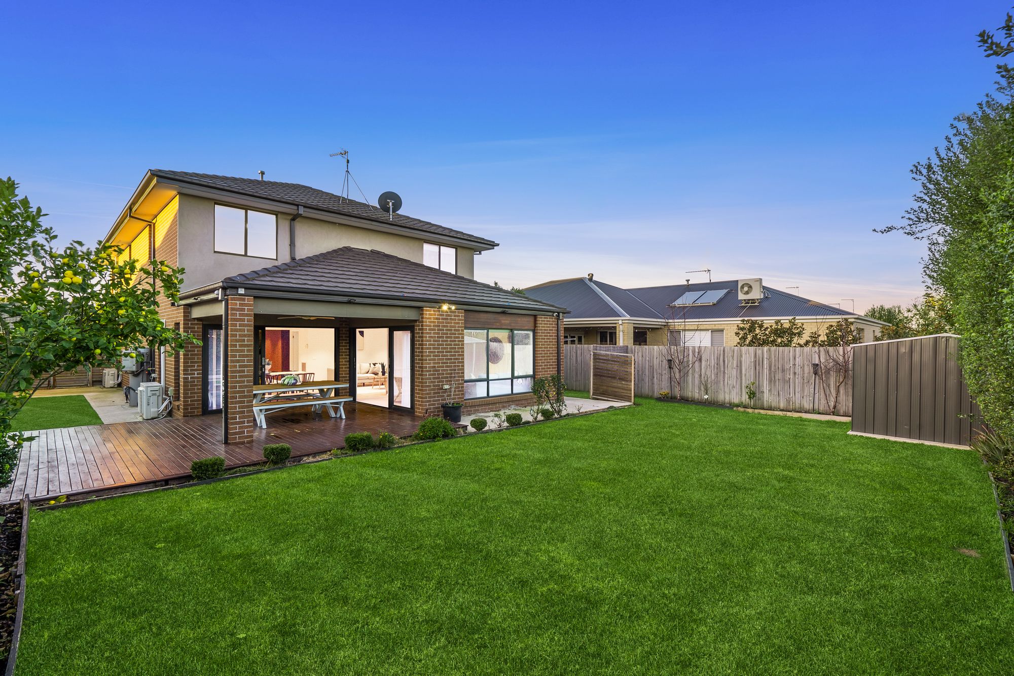 Outdoor: The front of the home impresses with a grand façade, decked entry, lush gardens, and a concrete driveway, all delivering great street appeal. Step outside to a large grassed rear yard with plenty of space for kids and pets to play. Established garden beds with fruit trees (including cherries, pomegranate, mandarins, blueberries, apricots, guava, lemons and plums), a 3m x 3m shed, concrete pathing, and wide side access enhance practicality. Entertain year-round on the generous decked alfresco, complete with ceiling fan and downlights.