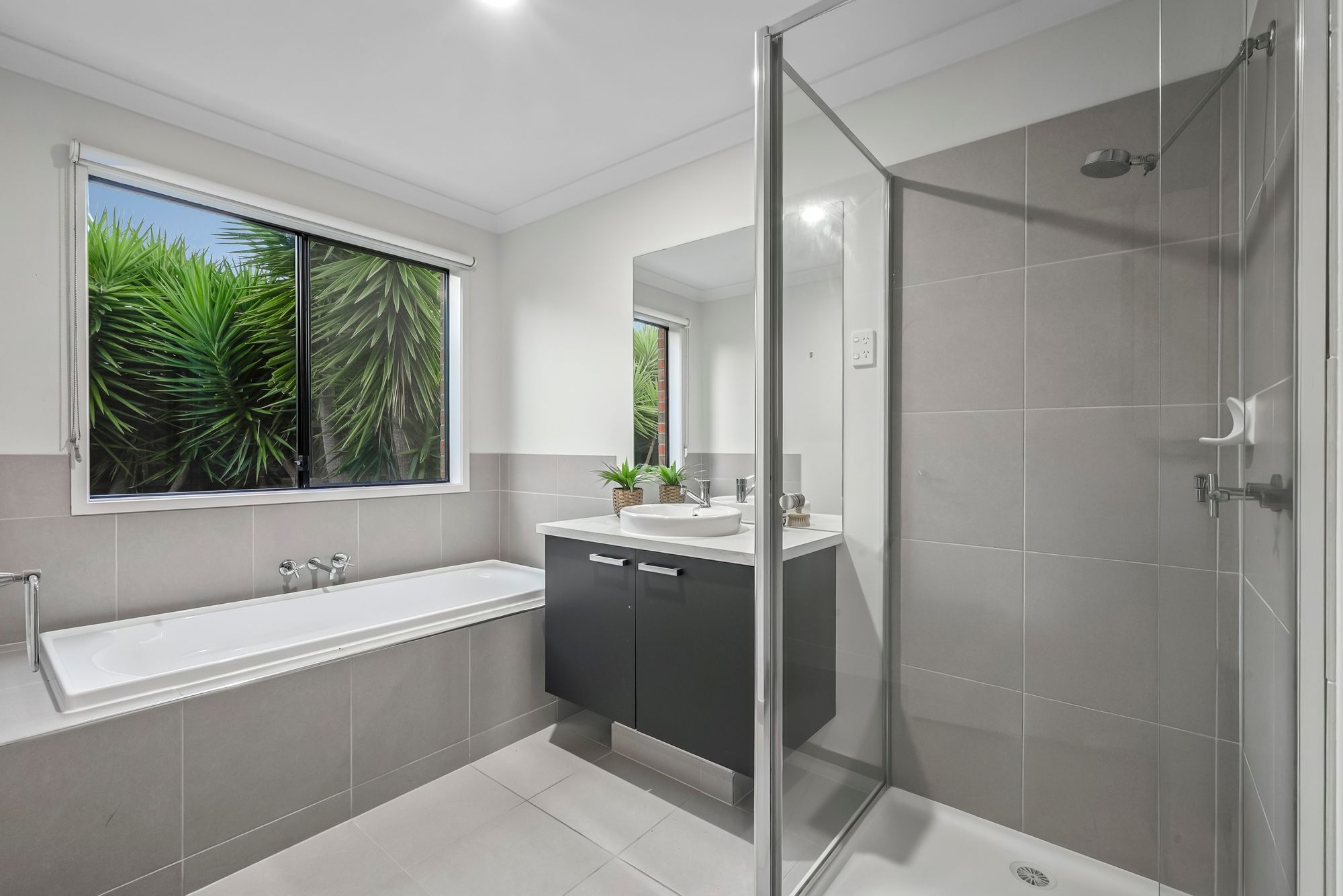 Additional Bathroom: The central bathroom is well-appointed with a single vanity, shower with dual showerhead, toilet and window with blockout blinds, perfect for family convenience and guest use.