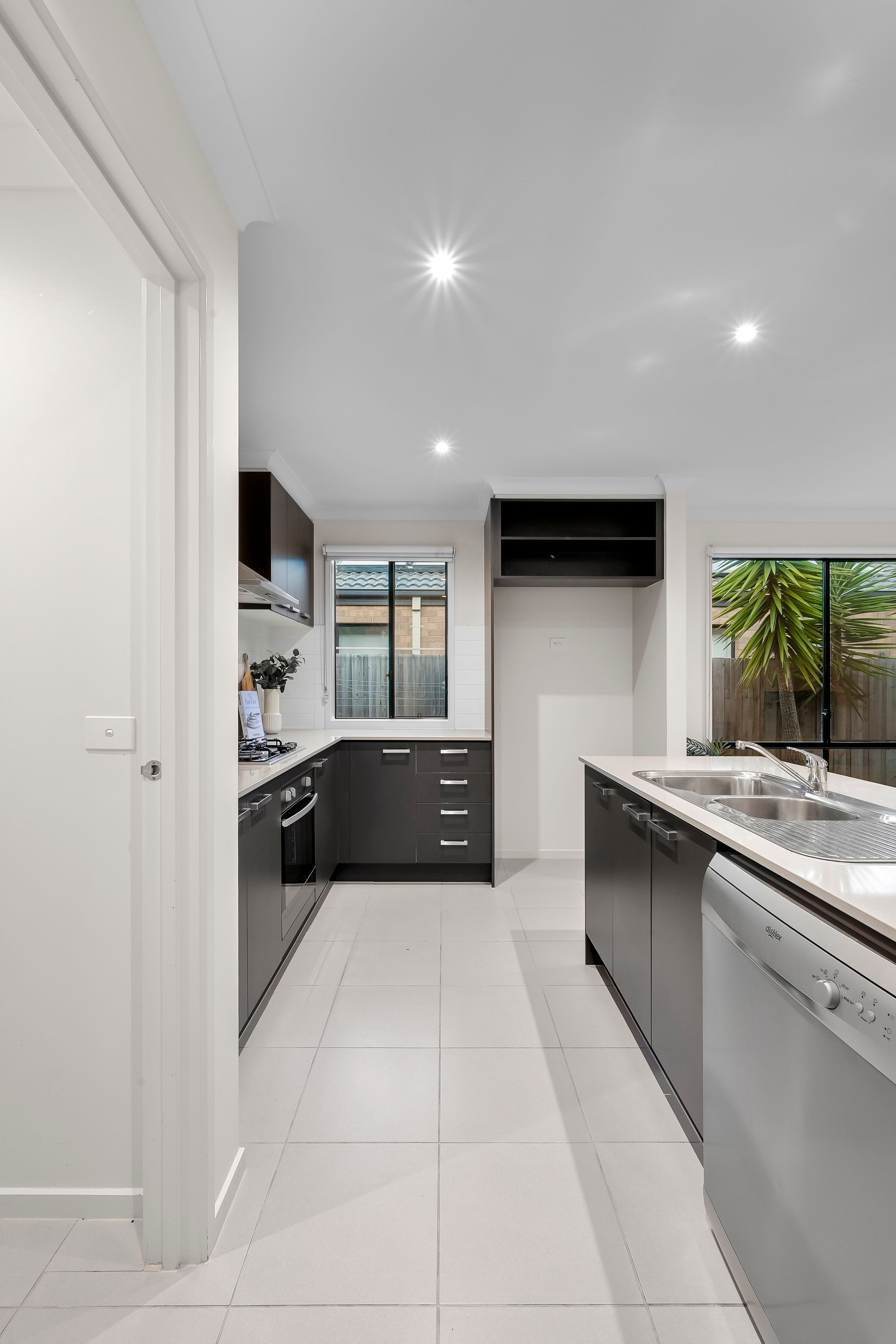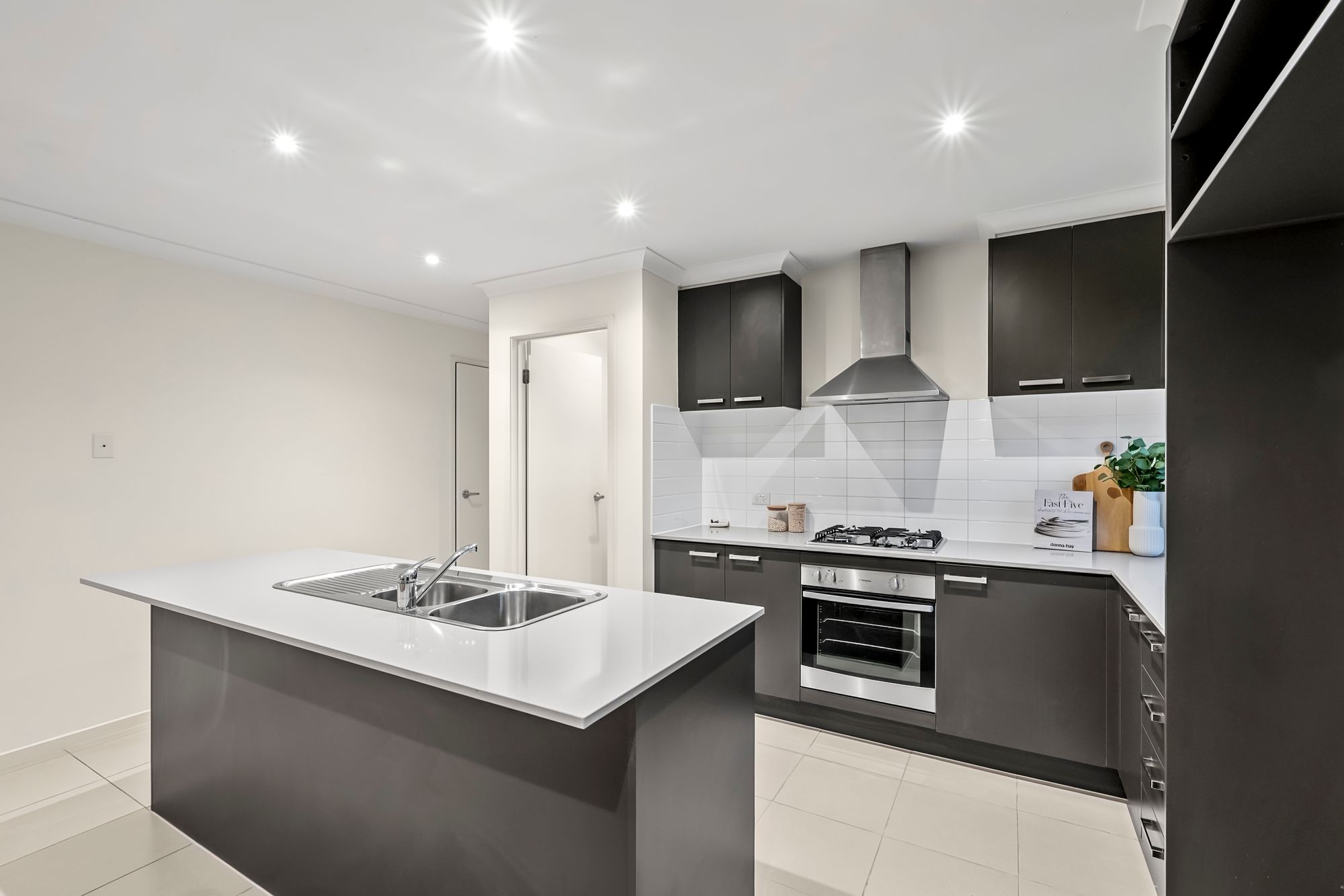 Kitchen: At the heart of the home, the designer kitchen features 20mm stone benchtops, a semi-integrated oven and stovetop, dishwasher, large fridge cavity, and a walk-in pantry with generous shelving. With downlights above and a clean, contemporary layout, it’s a space designed for everyday cooking and effortless entertaining.