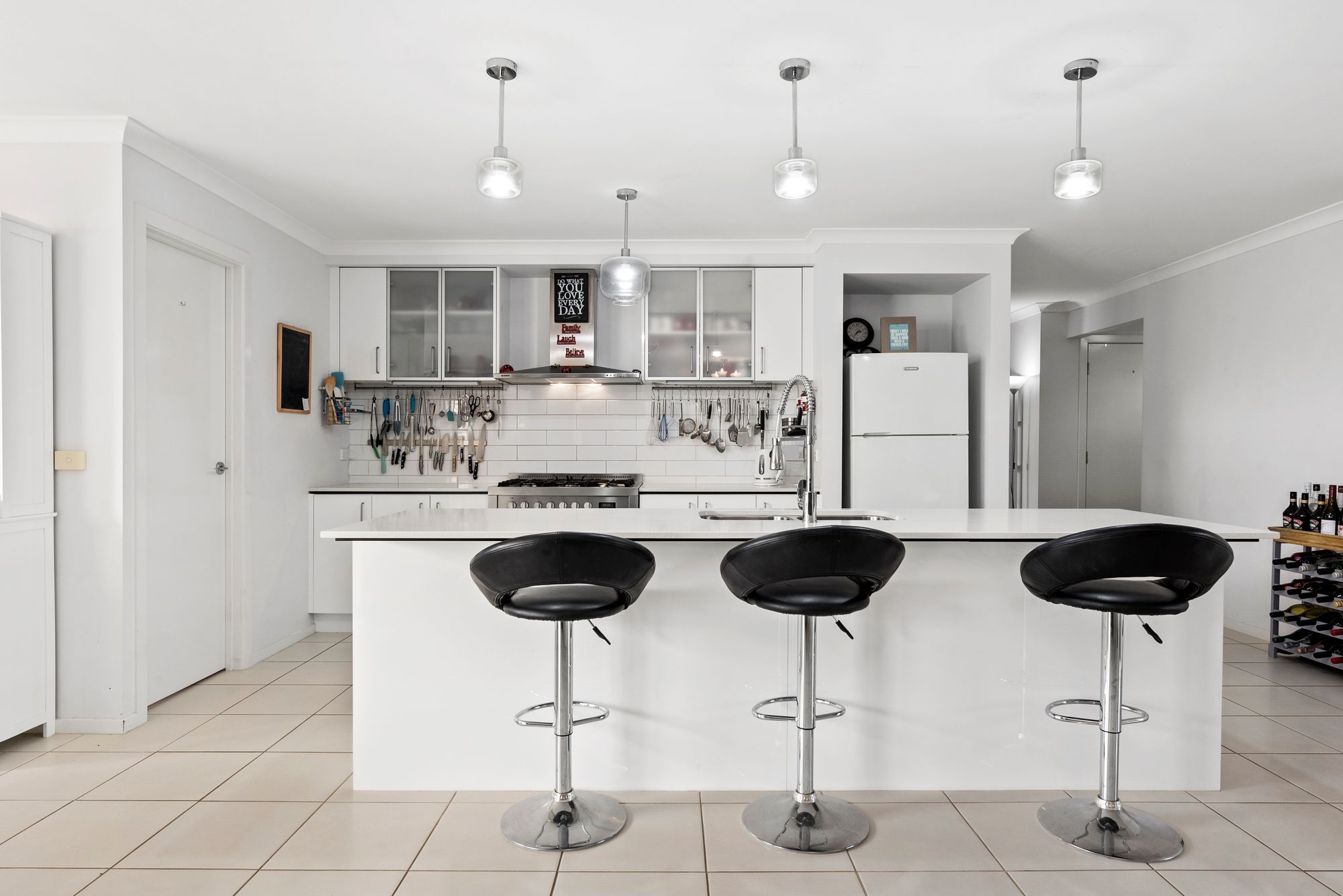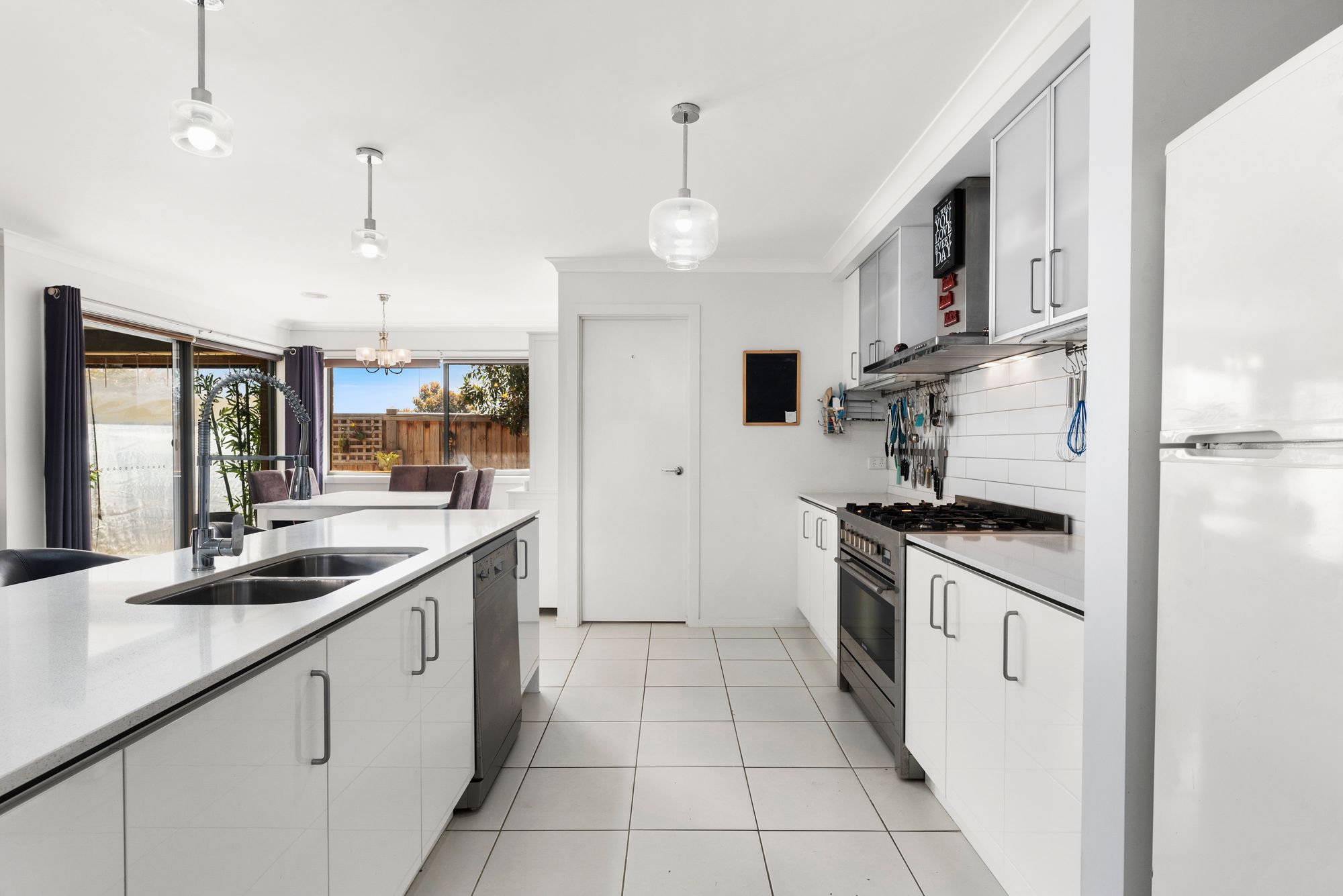 Kitchen – 20mm Stone benchtops, island bench, 900mm gas cooktop and ovan, pendant lighting, overhead cabinetry, walk in pantry with ample storage, tile splashback, double insert sink with upgraded tape ware, microwave provision, dishwaser.