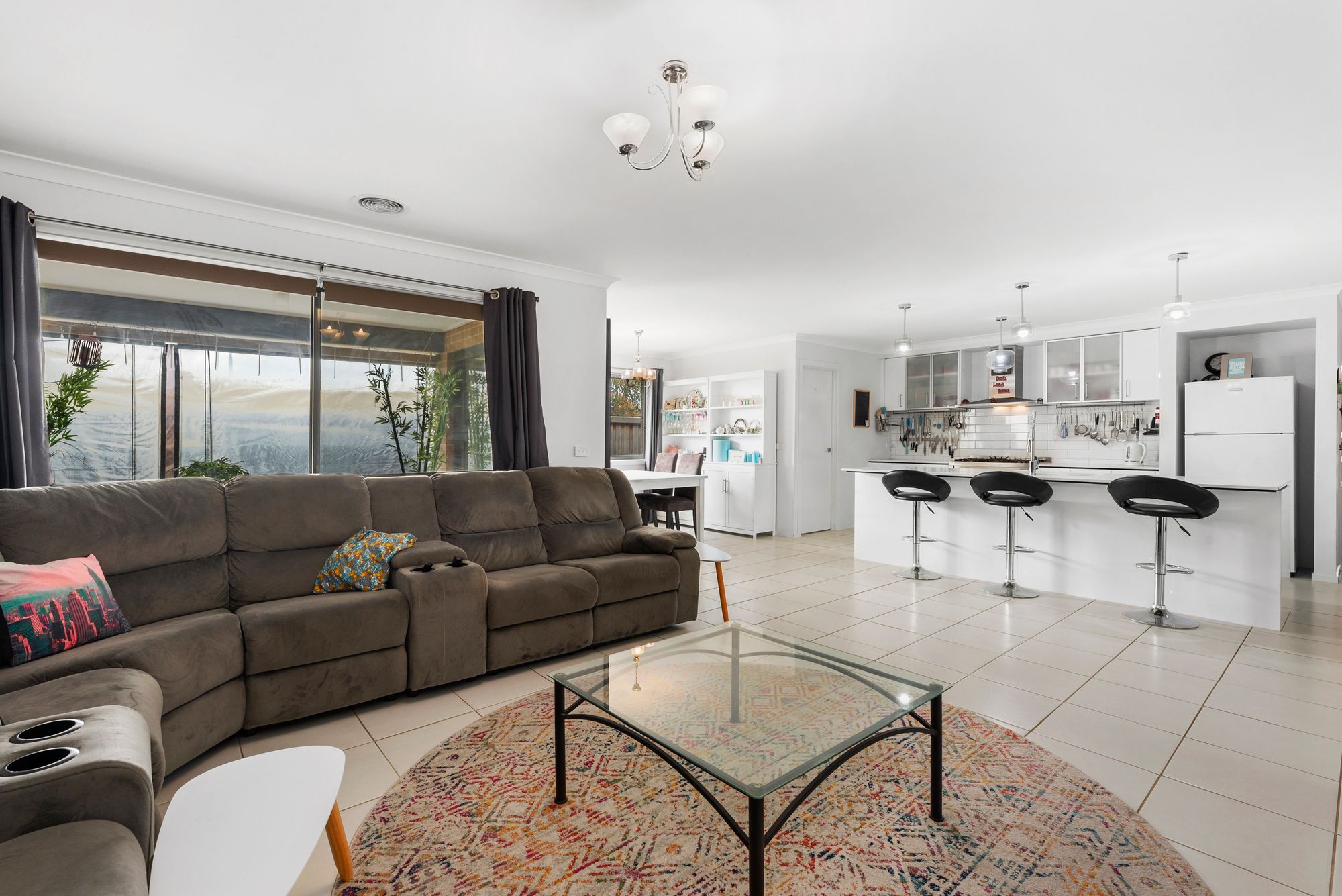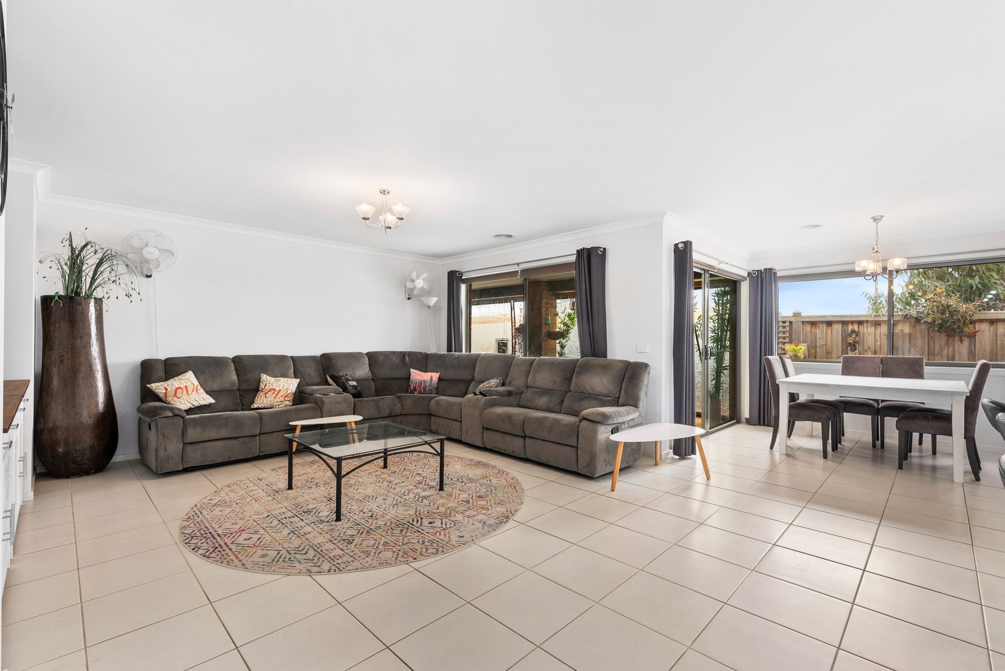 Living/Dining – Open plan adjoining kitchen/living/dining, spacious, ducted heating, large windows with blinds and curtains, large sliding doors through to the outdoor area, tv data points