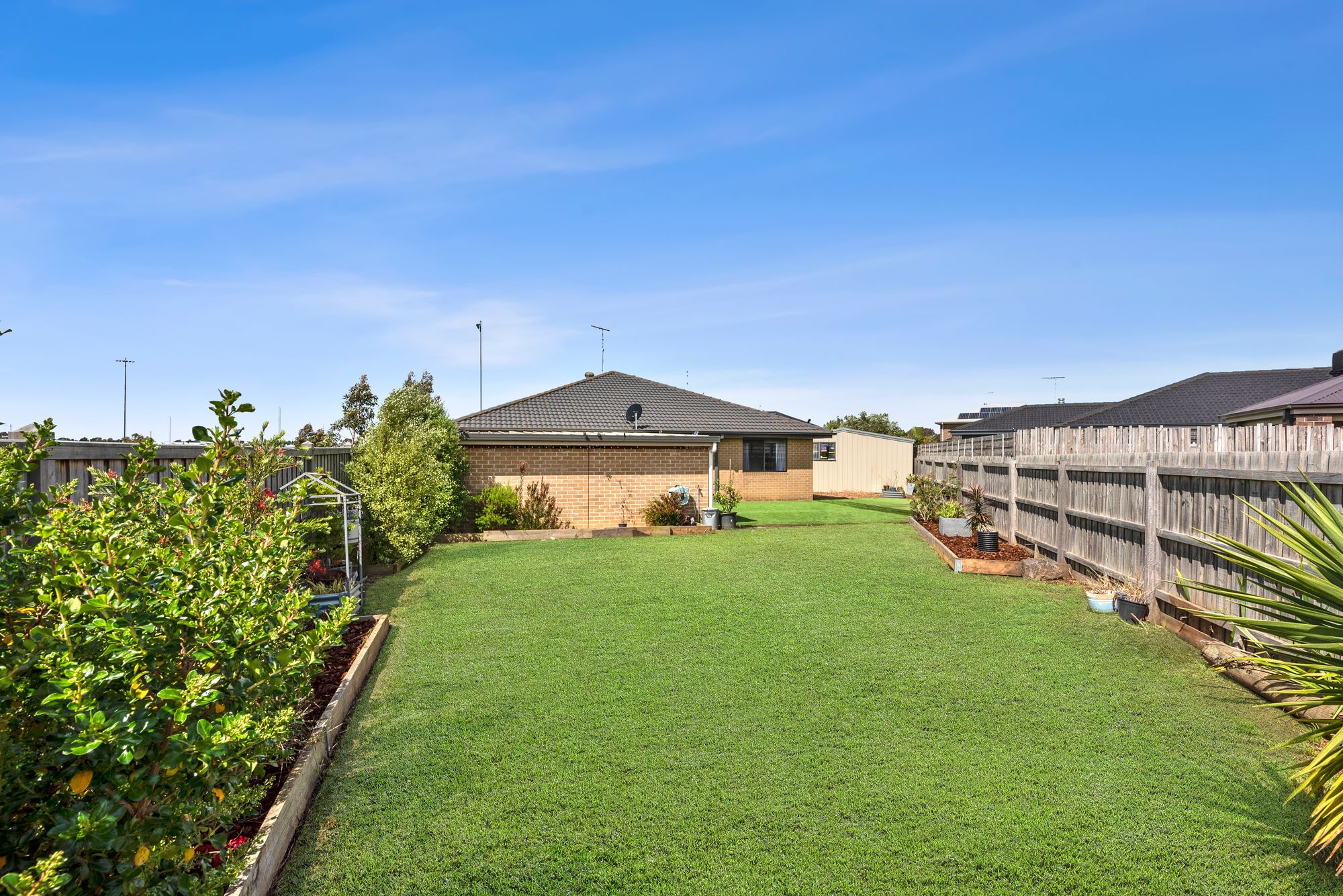 Outdoor – Outdoor entertaining space that can be enclosed, facing sporting ovals and backing onto walking tracks, garden beds with established plants, large 10mx6m shed, large side access, double garage, clothes line.