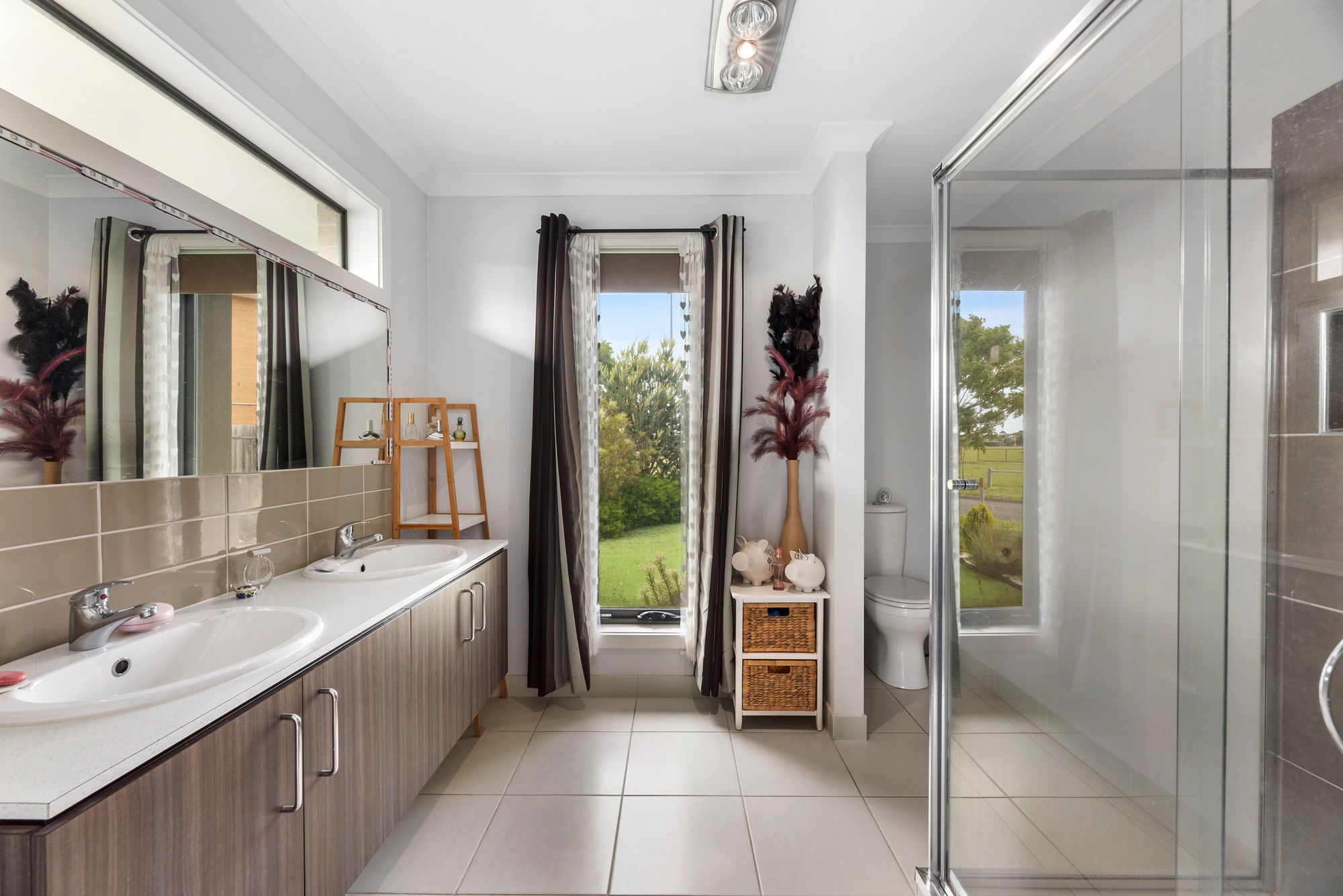 Master Bedroom – Spacious, large window with blinds, ducted heating, carpeted, large walk in robe, Ensuite with large semi-frameless shower with niche, double basin and extended vanity, mirror splash back, separate toilet, chrome fittings, highlight window.