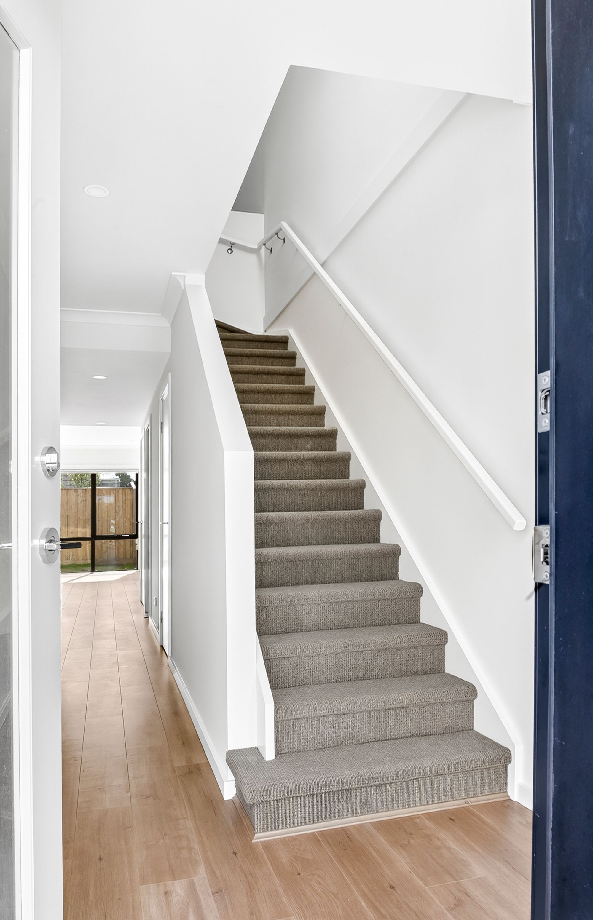 Upstairs Living: A versatile second living zone with plush carpet and downlights – perfect as a retreat, study area, or lounge room.