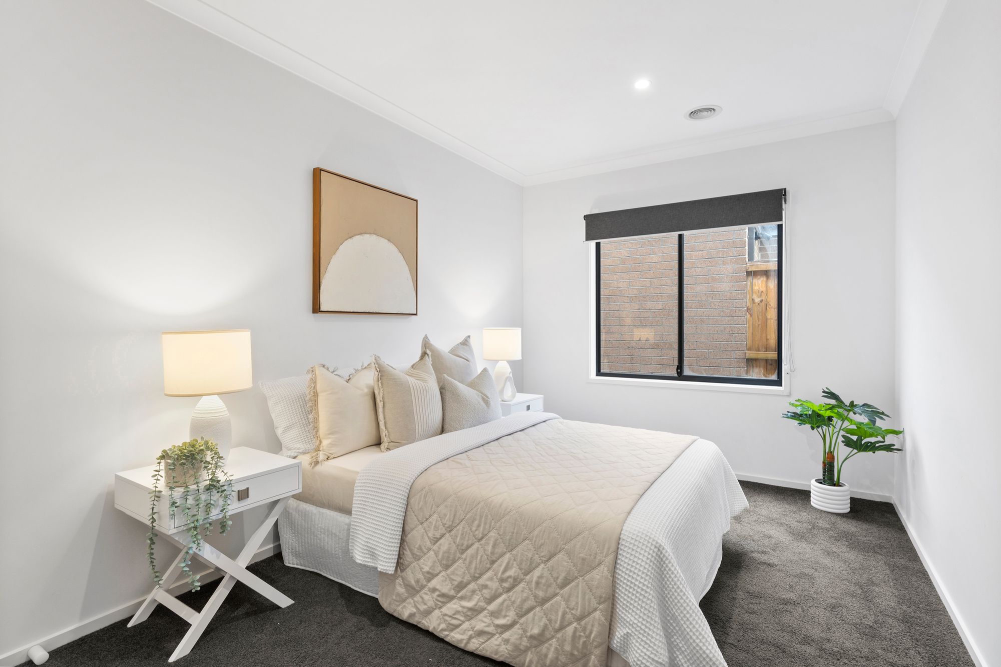Master Bedroom: Ducted heating, carpet, ceiling fan, roller blinds, tv point and walk in robe. Ensuite: Semi-frameless oversized shower dual basin vanity, open toilet, tiles, chrome fittings and mirror.