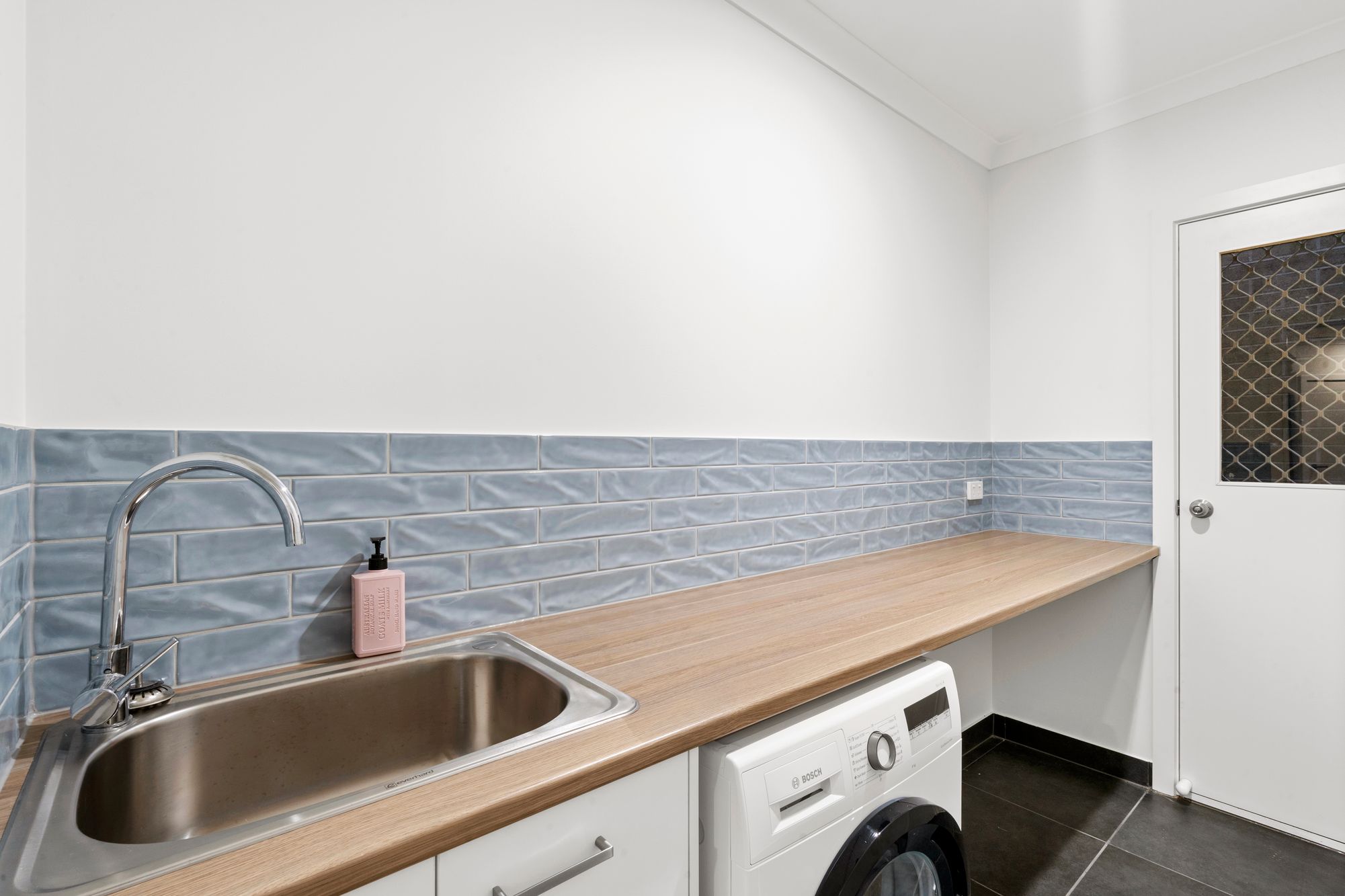 Step inside and be impressed by the light-filled open plan living and dining areas, perfect for entertaining friends and family. The well-appointed kitchen features high-quality appliances, ample storage space, and a breakfast bar to enjoy. With 3 separate living zones, there’s plenty of room for versatility and relaxing. Attention to detail- the laundry is finished with generous bench space, upgraded finishes and additional storage.